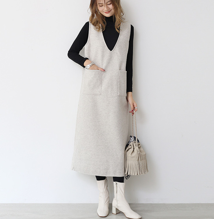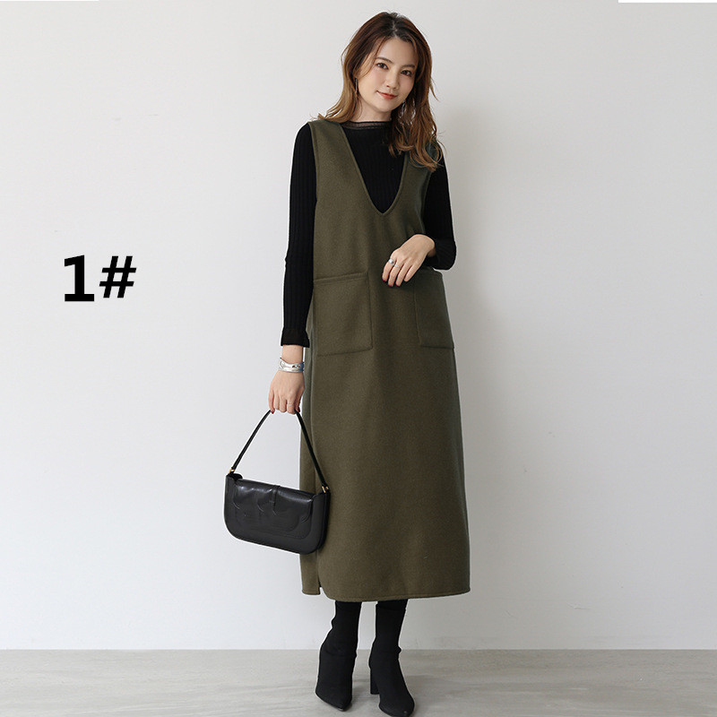 秋冬向きの厚手生地を使用したレディース向けロングワンピース。