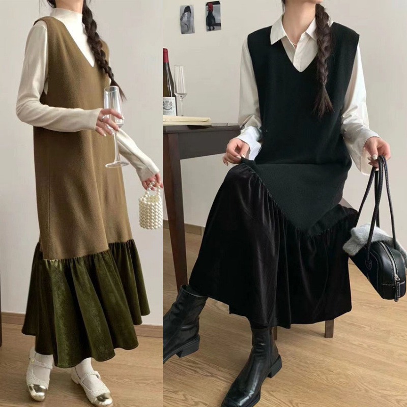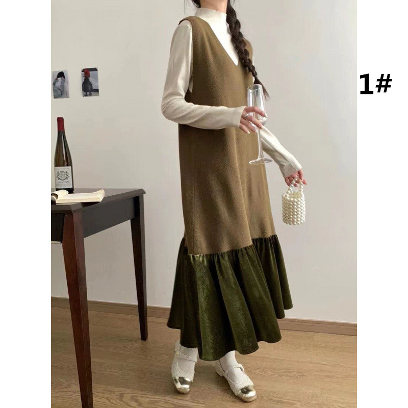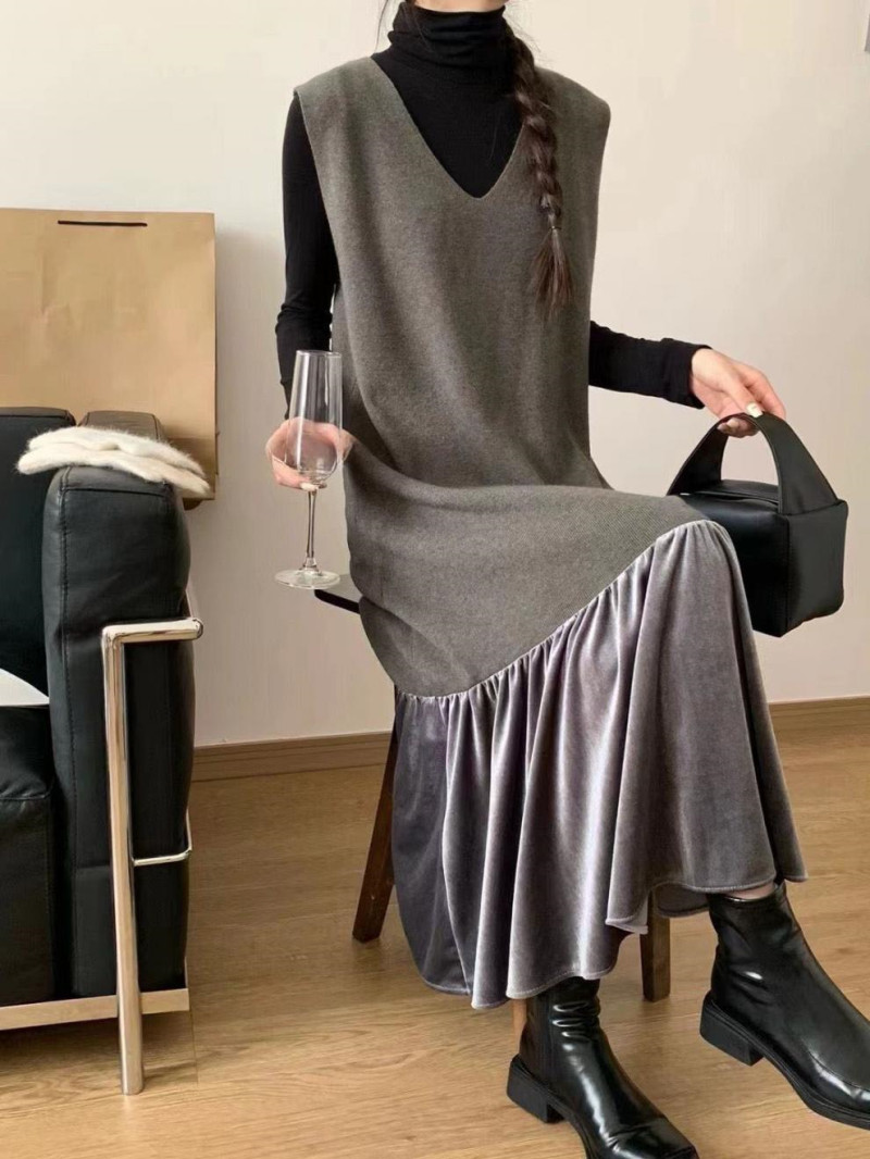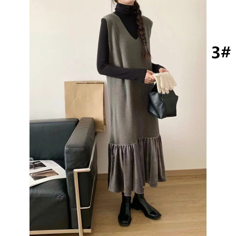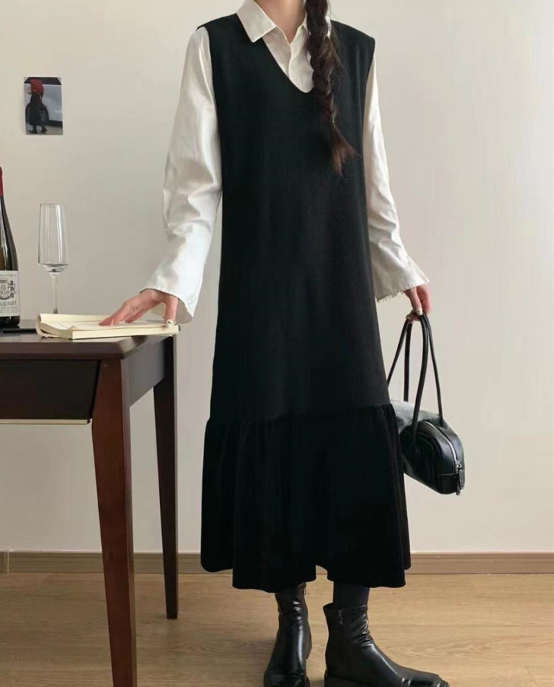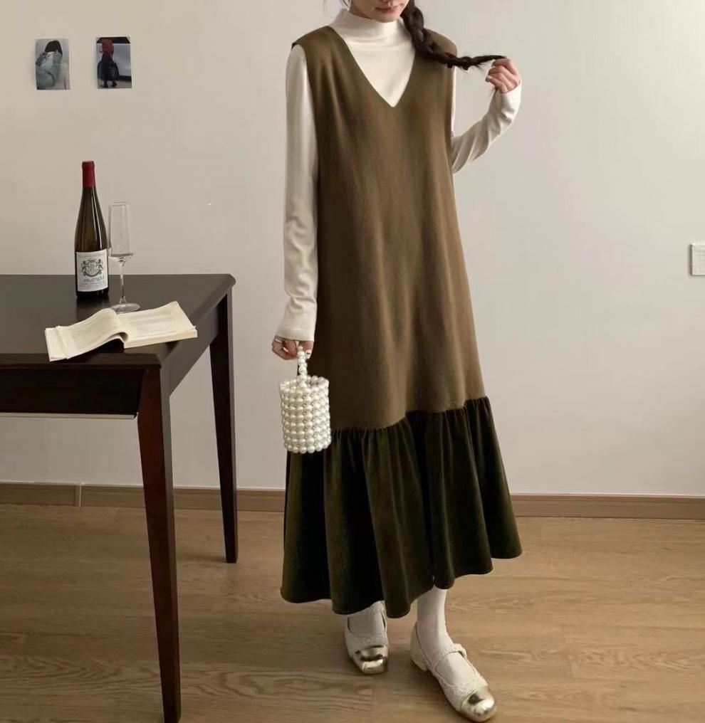 シンプルなデザインでコーディネートしやすく、ロングワンピースとして