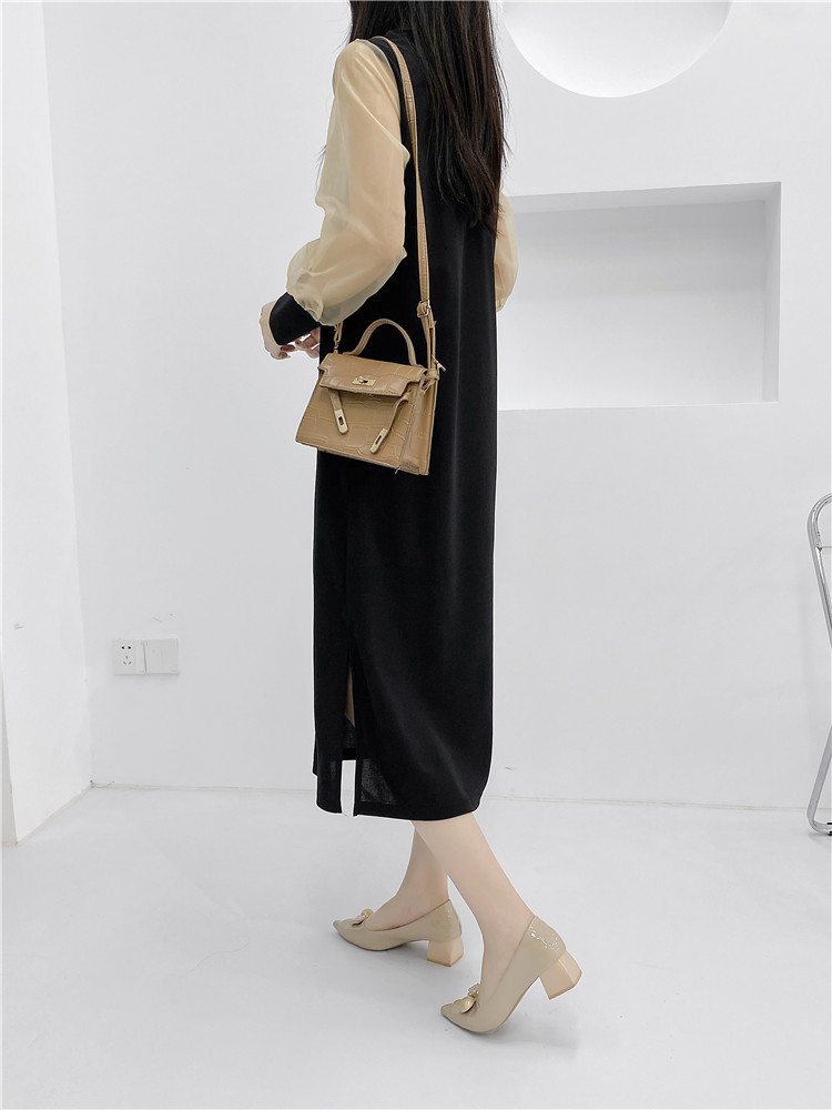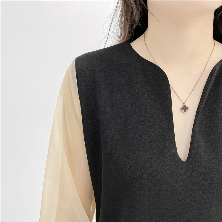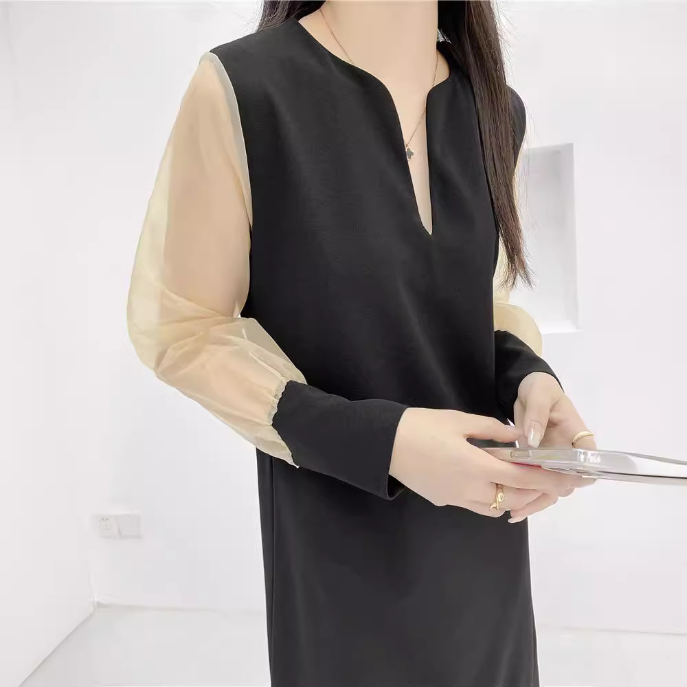袖部分にレース素材を使用した異素材切り替えが上品な印象。