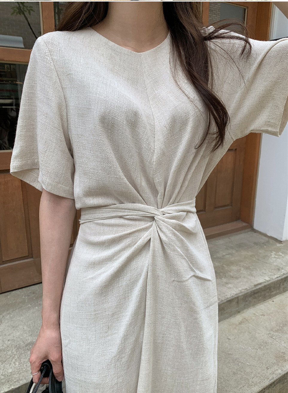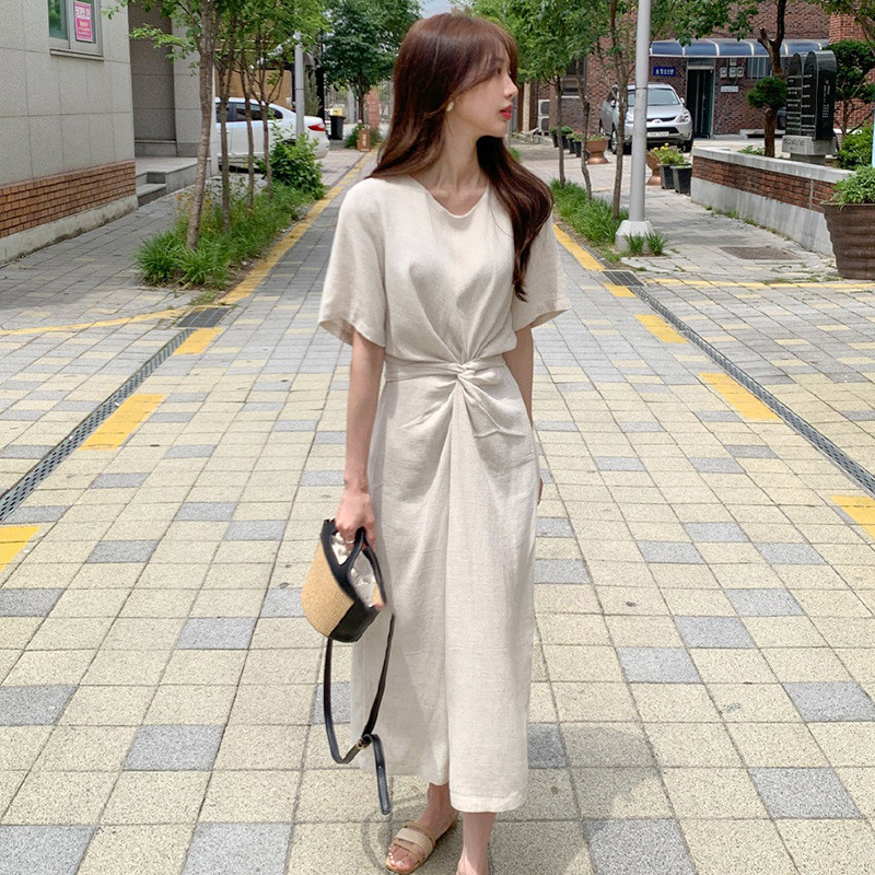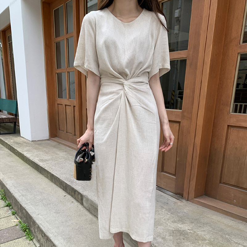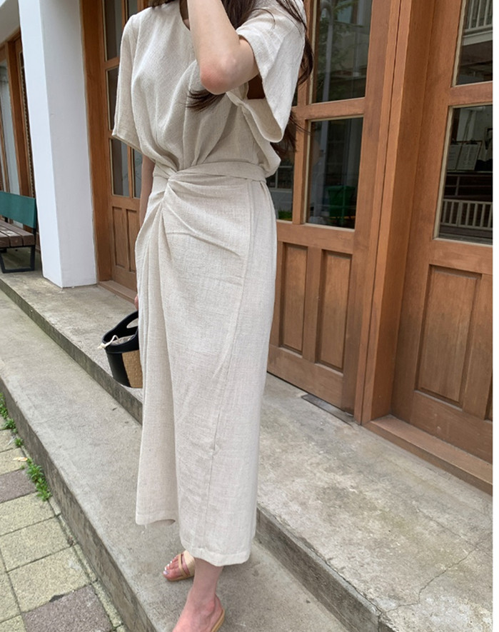 大人気なマキシ丈ロングワンピースが入荷致しました。 ウエスト部分のツイストデザインが体のラインを美しく見せ、 サッと着るだけで洗練されたきれいめコーデが完成します。
