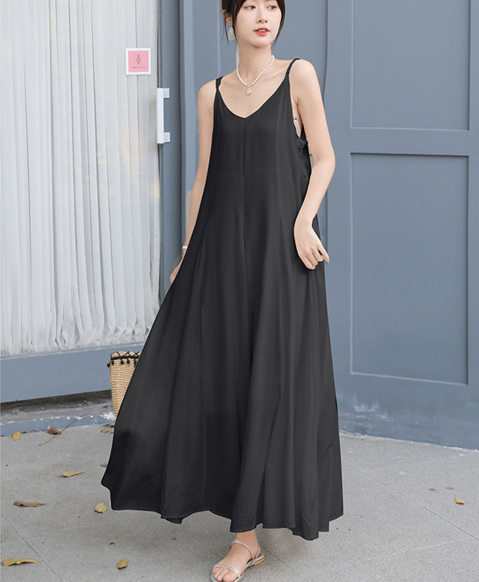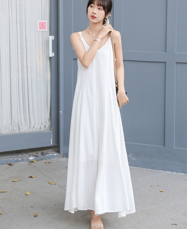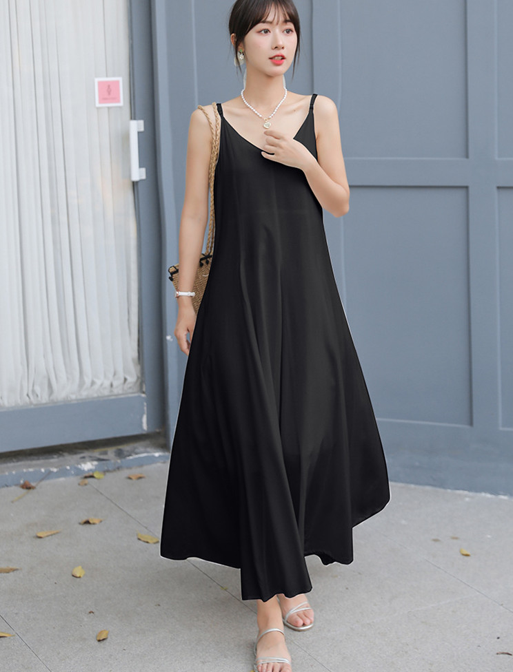 キャミソールタイプで一枚でサッと着るだけで上品なコーディネートが完成。