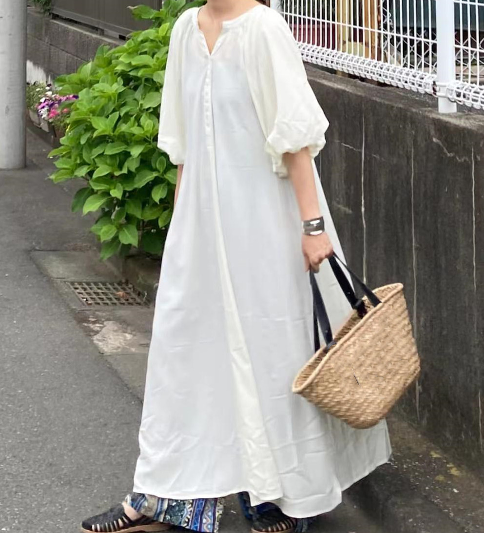 ゆったりシルエットで体型カバーも叶える、大人女性におすすめの一着。