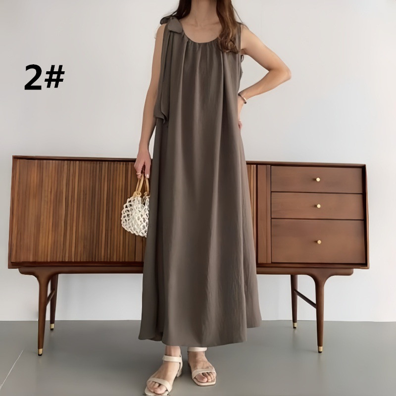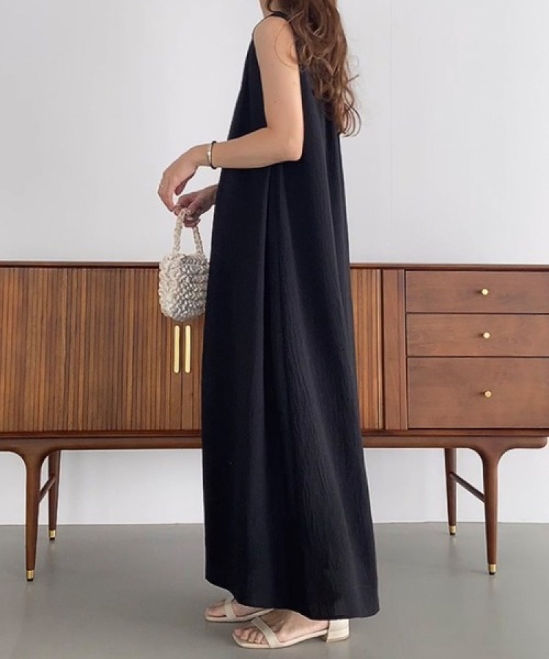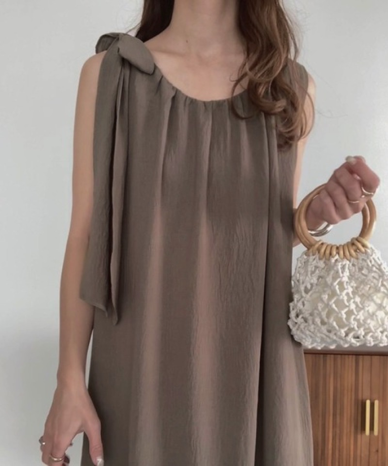 肩リボンが可愛いノースリーブデザインで、一枚でお洒落な着こなしが完成。