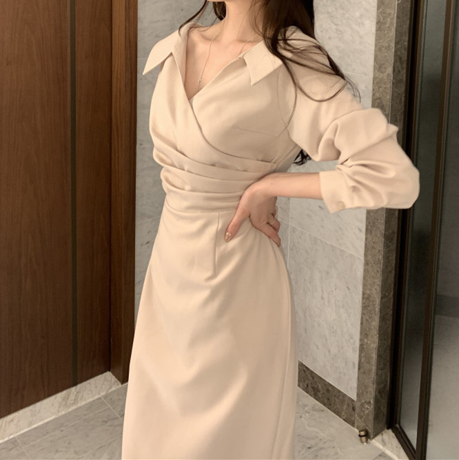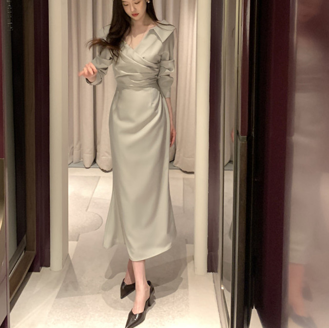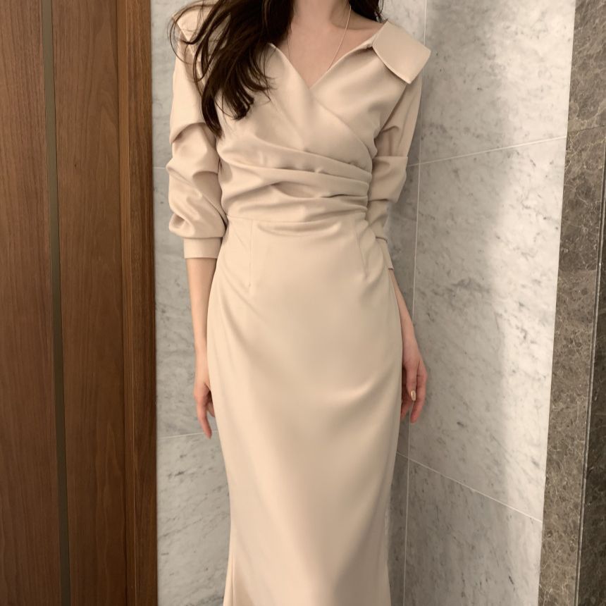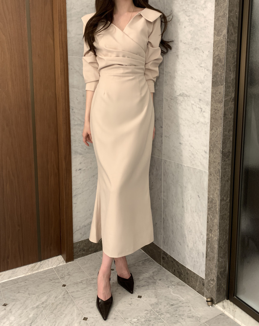 上品なラップデザインで大人の女性らしさを演出するロングワンピースです。