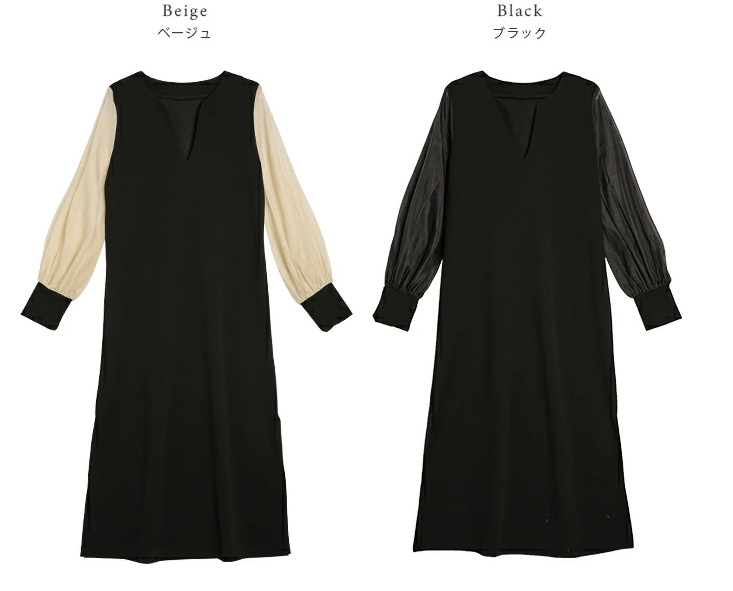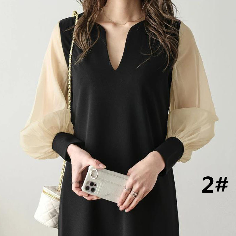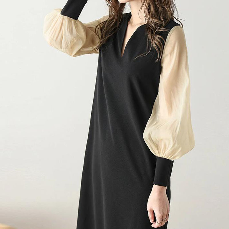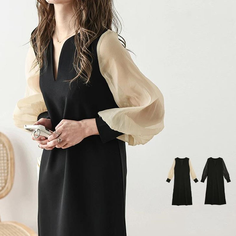 エレガントなVネックとシアー袖がポイントの上品なデザインです。