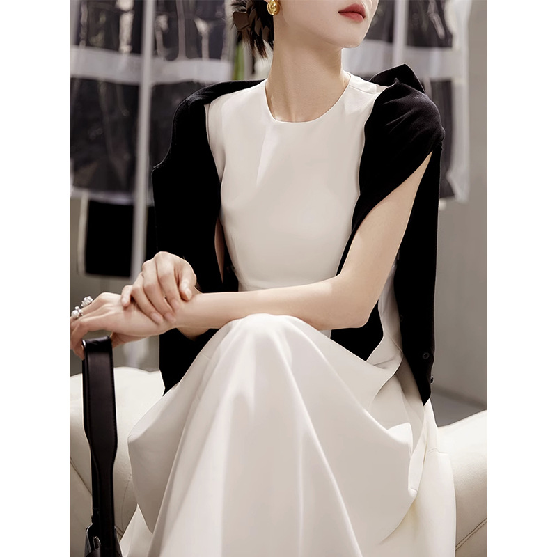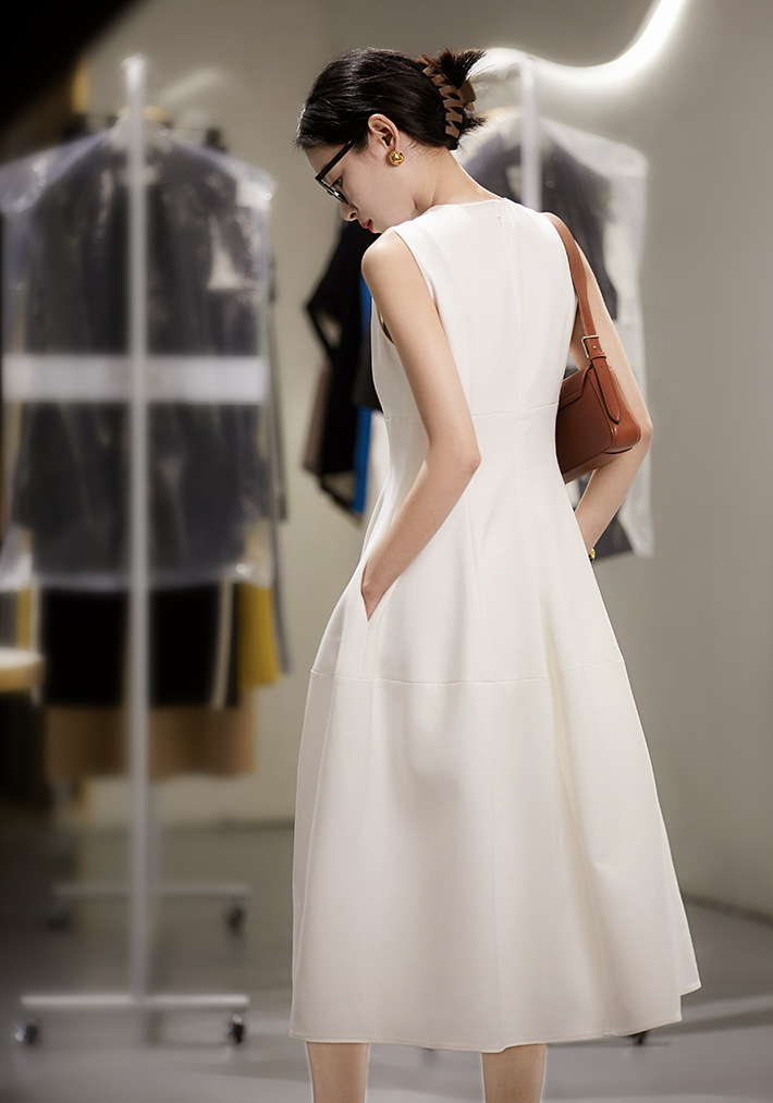 上品な丸首デザインで、一着持っていると様々なシーンで大活躍するワンピースです。