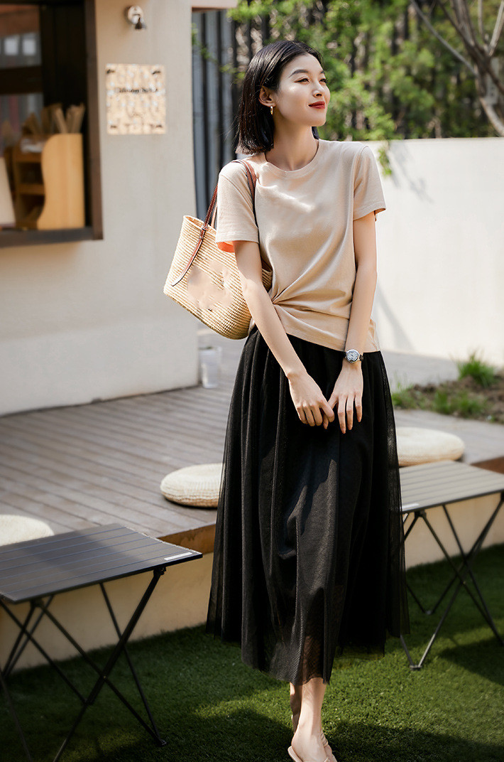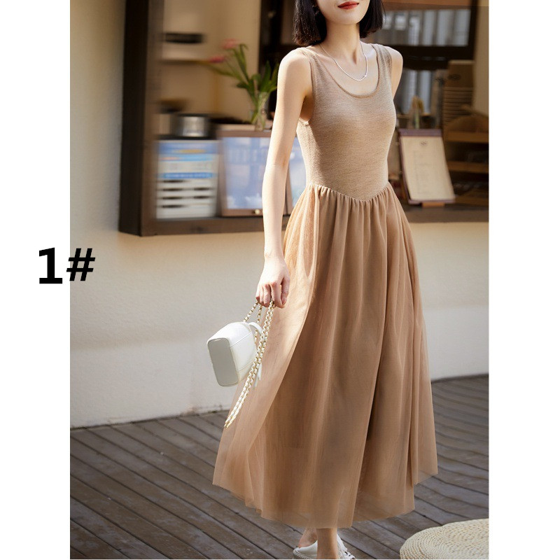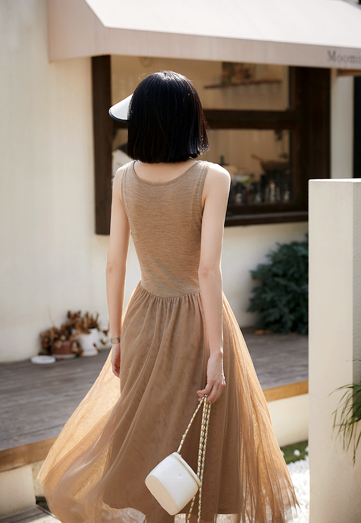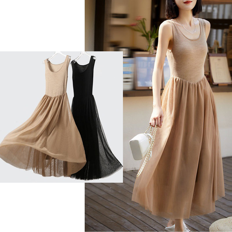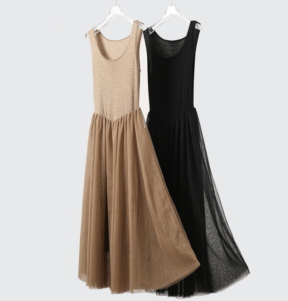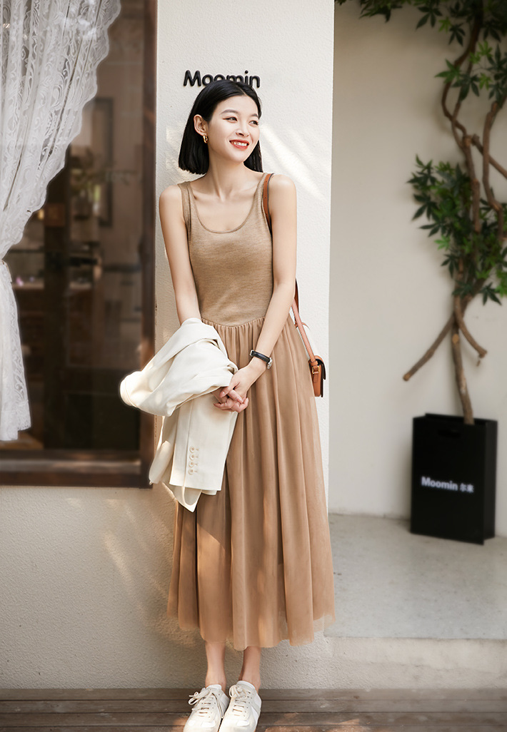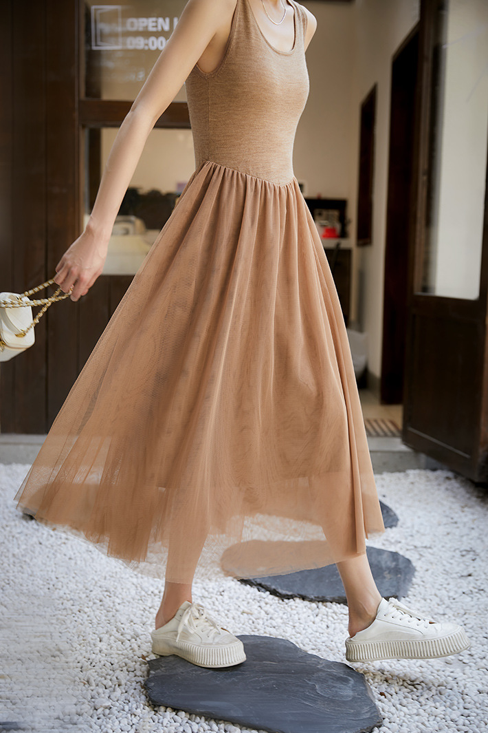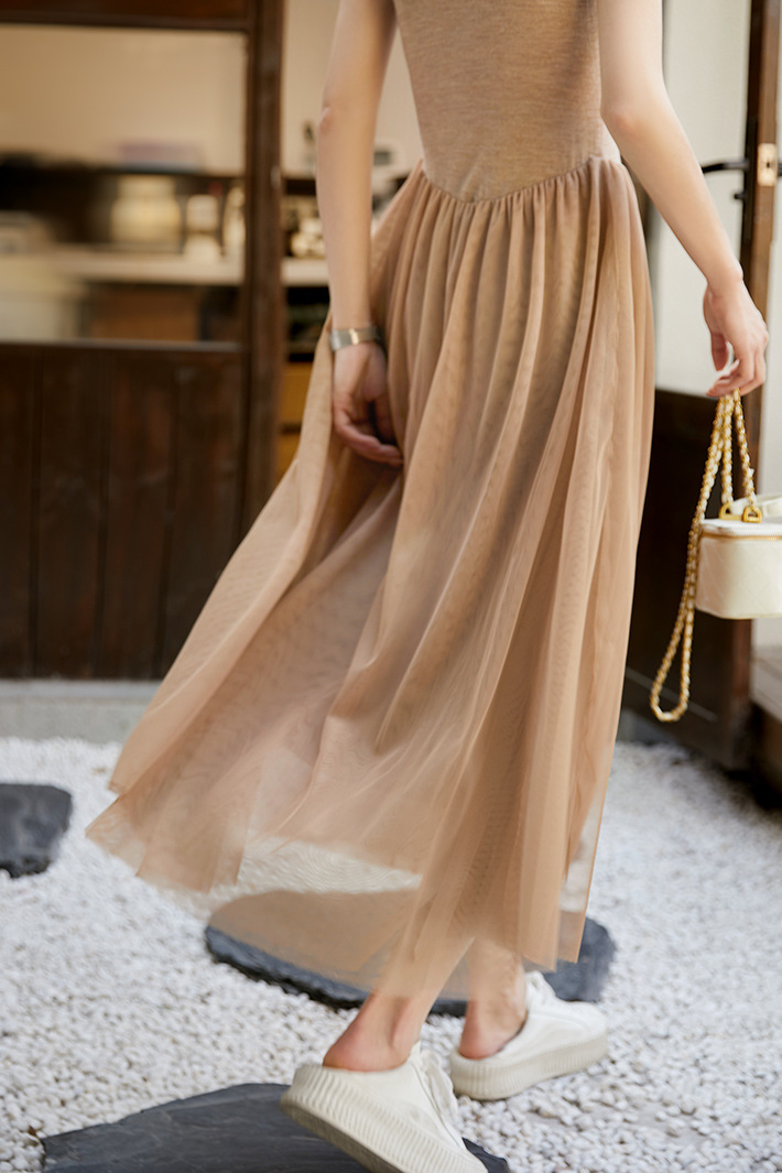 ニット素材とチュール生地を組み合わせたエレガントなデザインで、一着持っていると様々なシーンで大活躍します。