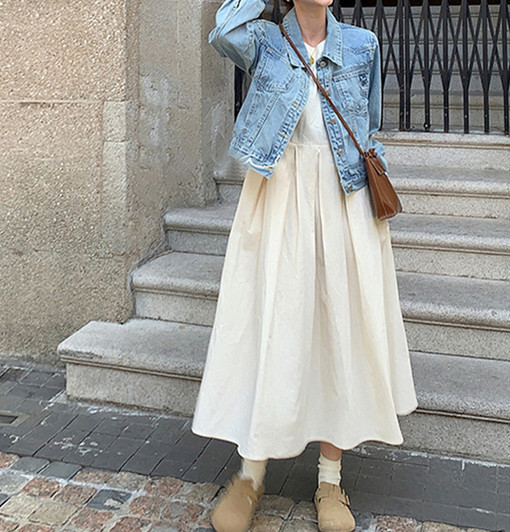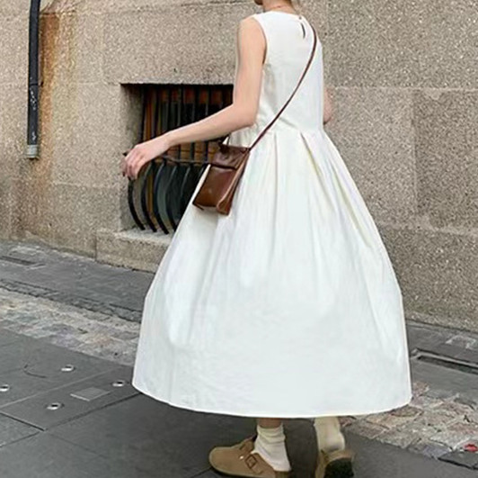 上品な白色とフレアシルエットが魅力的なロングワンピース。