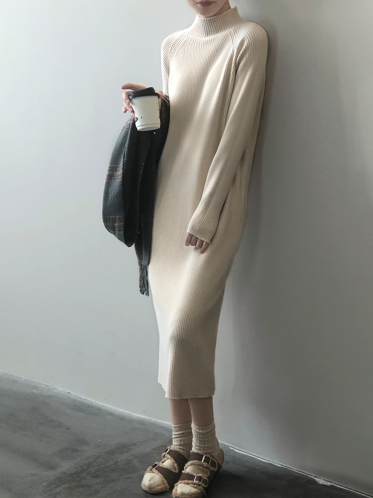 タートルネックデザインでエレガントなロングワンピースは、デイリー使いから特別な日まで幅広く活躍します。