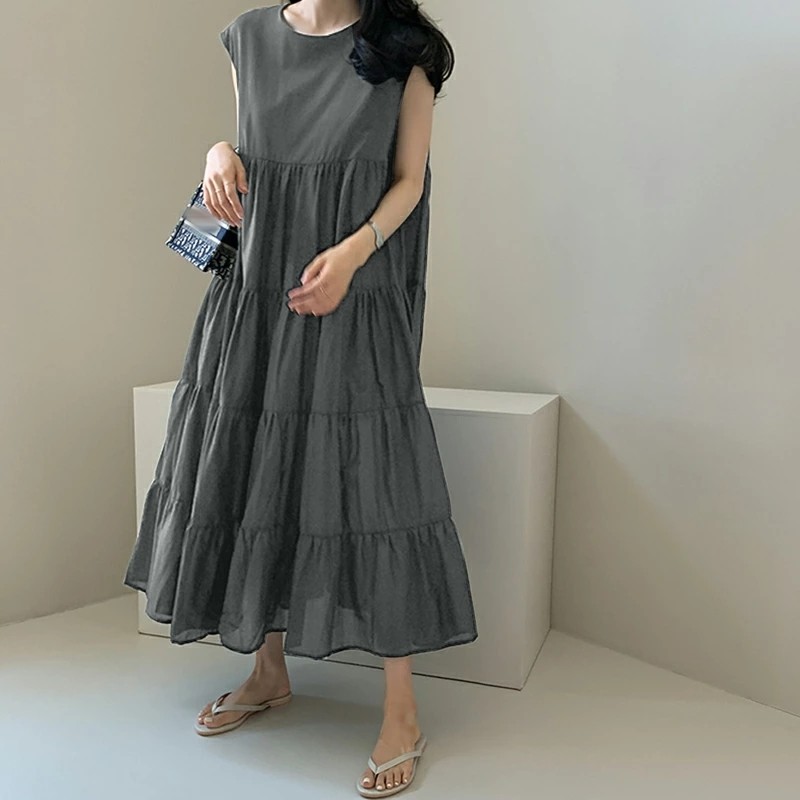 段々に広がるティアードデザインが上品で、体型カバー効果も抜群。