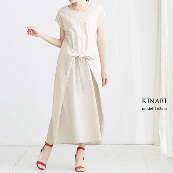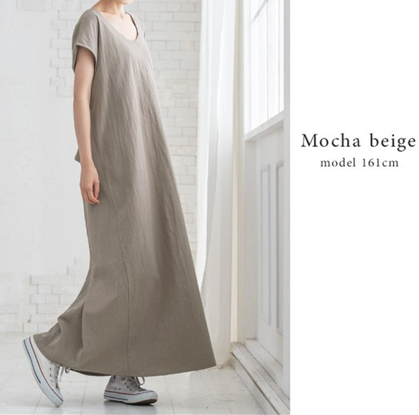 シンプルで清楚なデザインのロングワンピースで、コーディネートしやすく体型カバー効果も抜群。