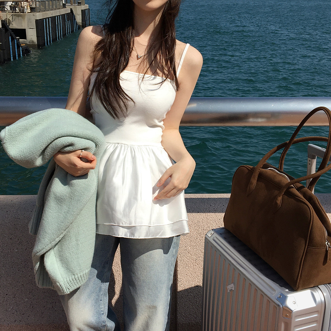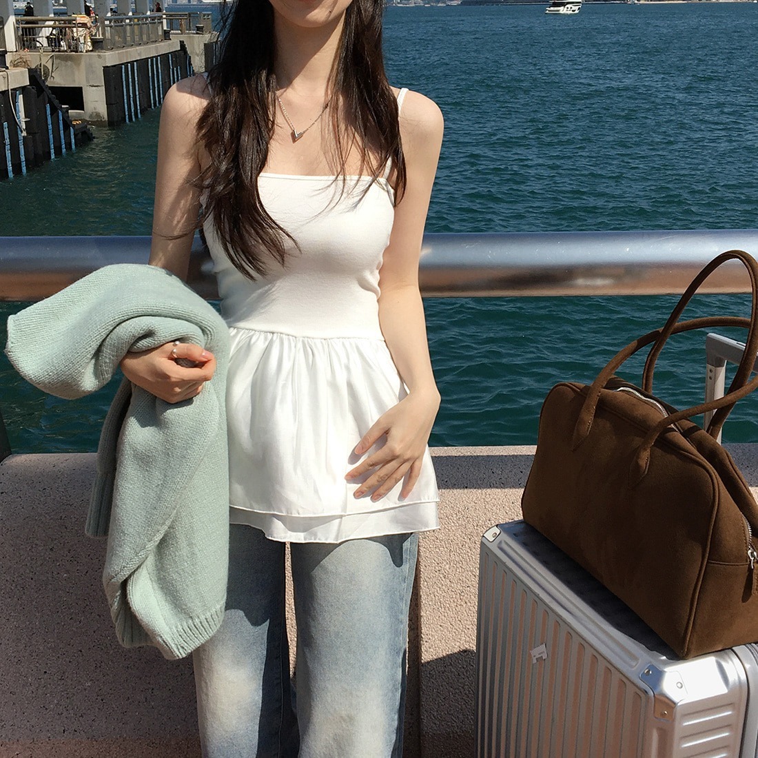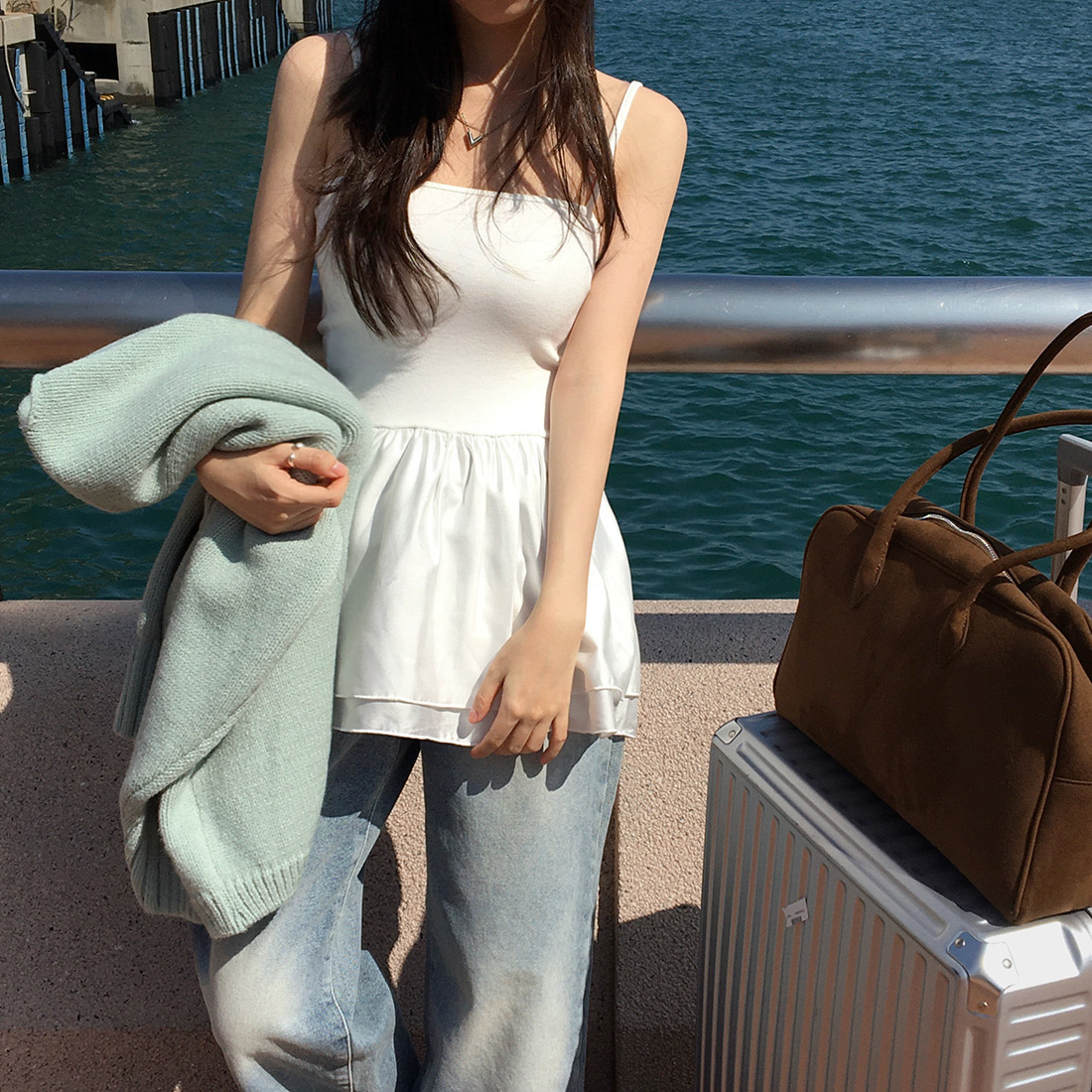 今季注目の気質あふれるキャミワンピースが登場。 シンプルでありながらフリルが上品な印象を演出する春の新作アイテムです。 インナーとしても一枚でも着回し抜群で、ロングワンピースとの重ね着コーデも楽しめます。