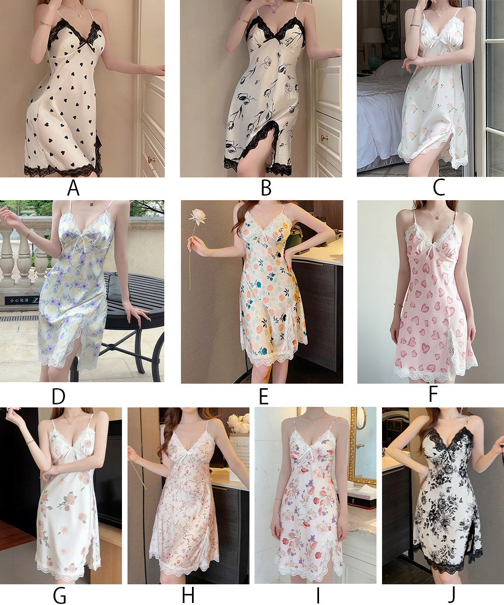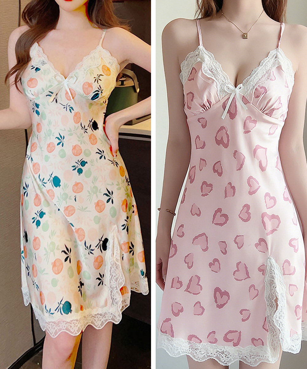 豊富な花柄とハート柄が可愛いサテン調キャミソールロングワンピース。