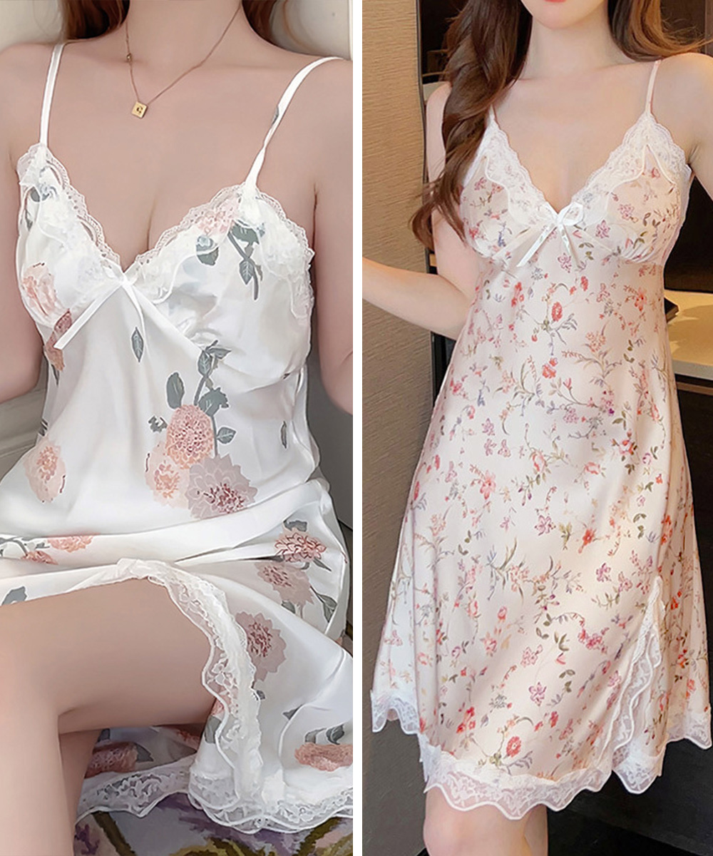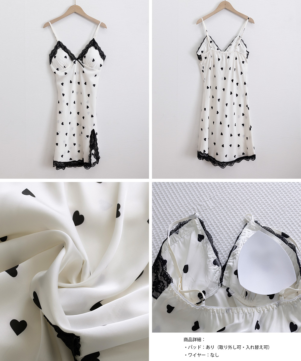 豊富な花柄とハート柄が可愛いサテン調キャミソールロングワンピース。 なめらかな素材が肌にやさしくなじみ、軽やかで快適な着心地を実現。 レース切り替えとVネックデザインが女性らしさを演出し、体型カバー効果も抜群。 ストラップは長さ調節可能で、お好みのスタイルに合わせられます。 パッド付きで安心、おうち時間やリラックスタイムにぴったりのキャミワンピです。