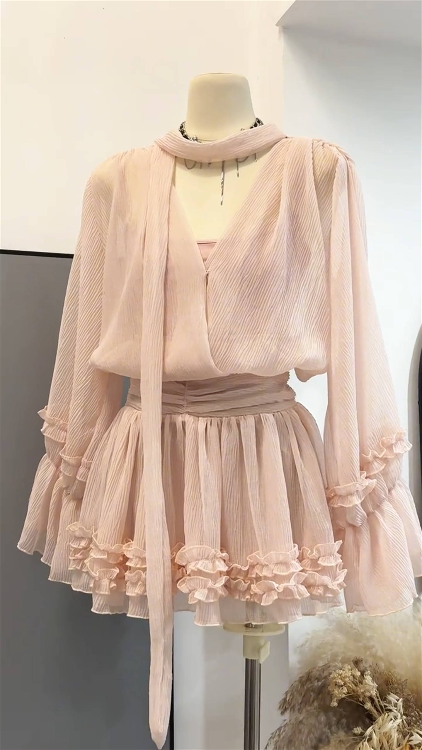 柔らかなピンクベージュカラーと繊細なプリーツ素材が女性らしさを演出します。