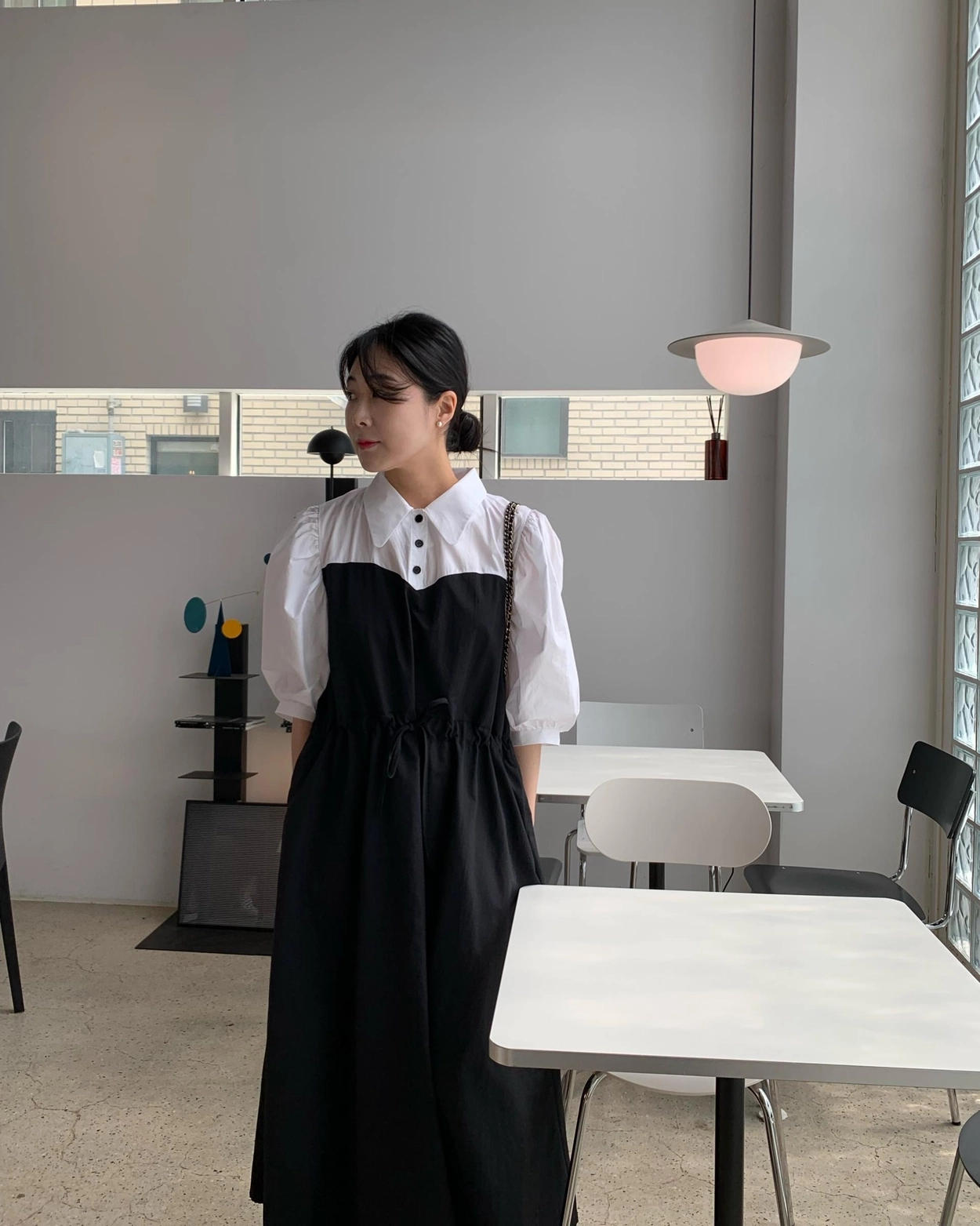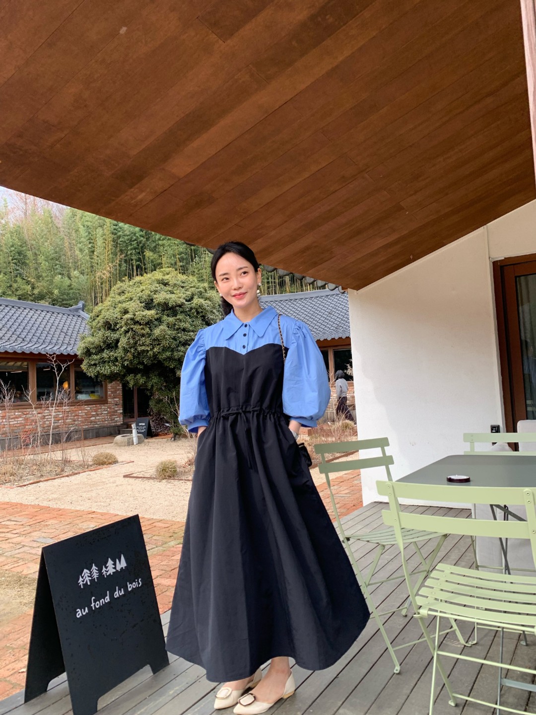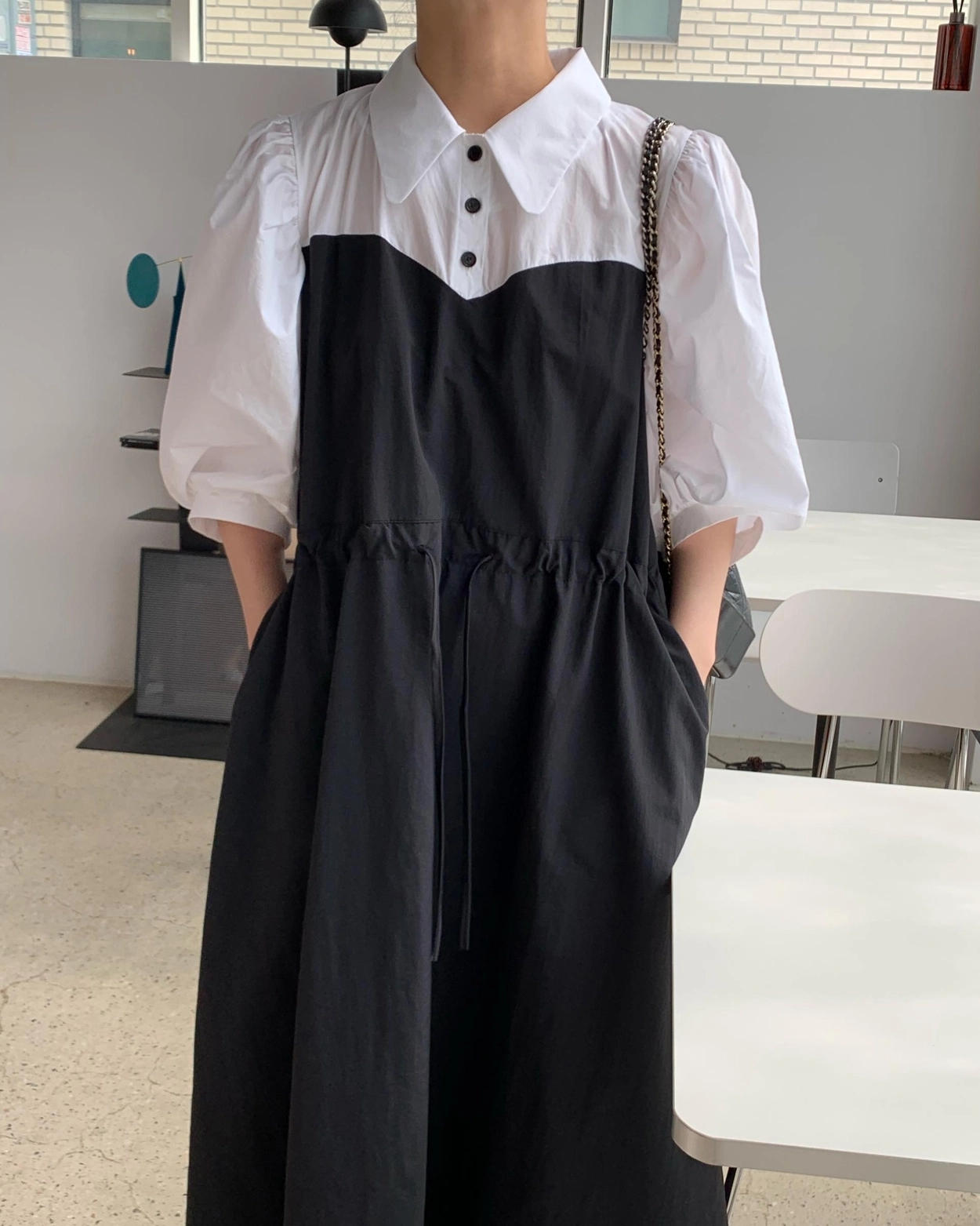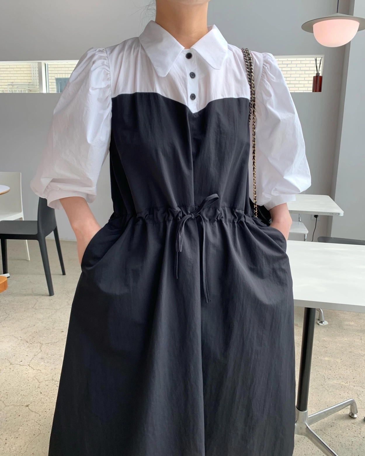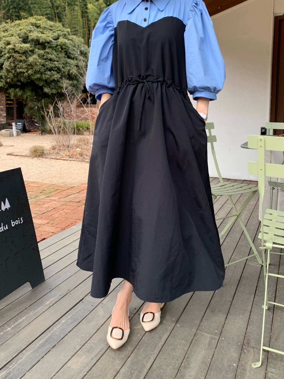 ウエストリボンでシルエットを調整でき、ゆったりとした着心地も叶えます。