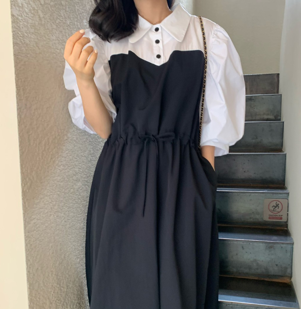 上品な文芸風デザインが魅力的なロングワンピースです。