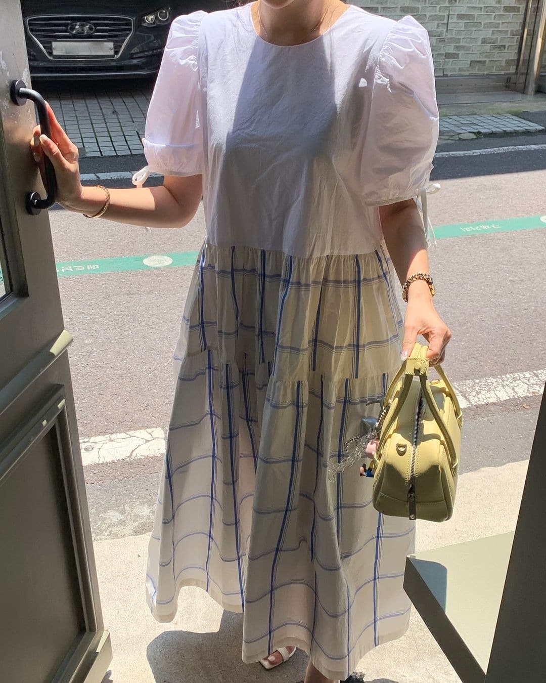 パフスリーブとティアードフレアスカートが今季らしいトレンド感を演出。