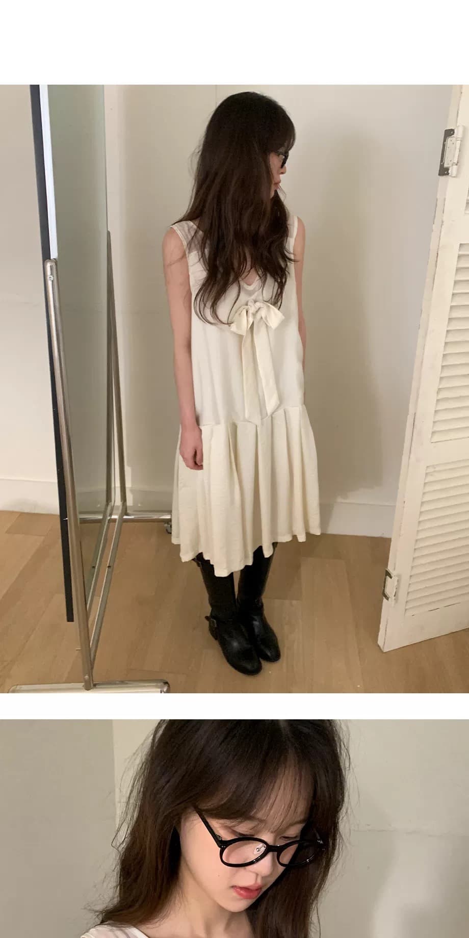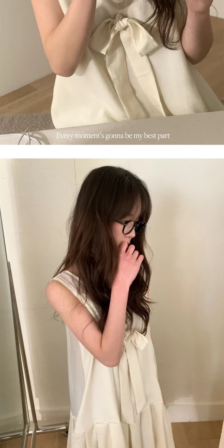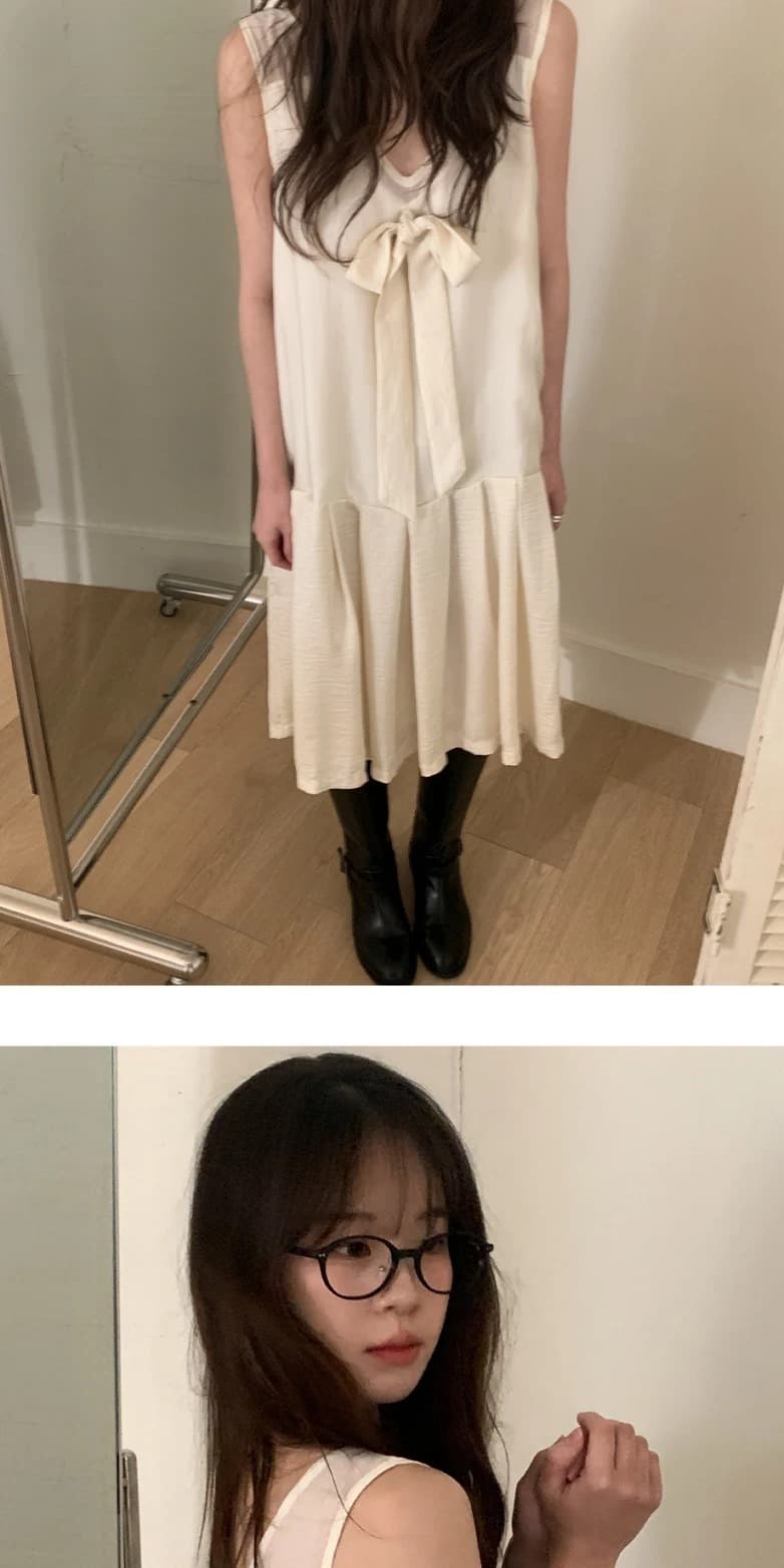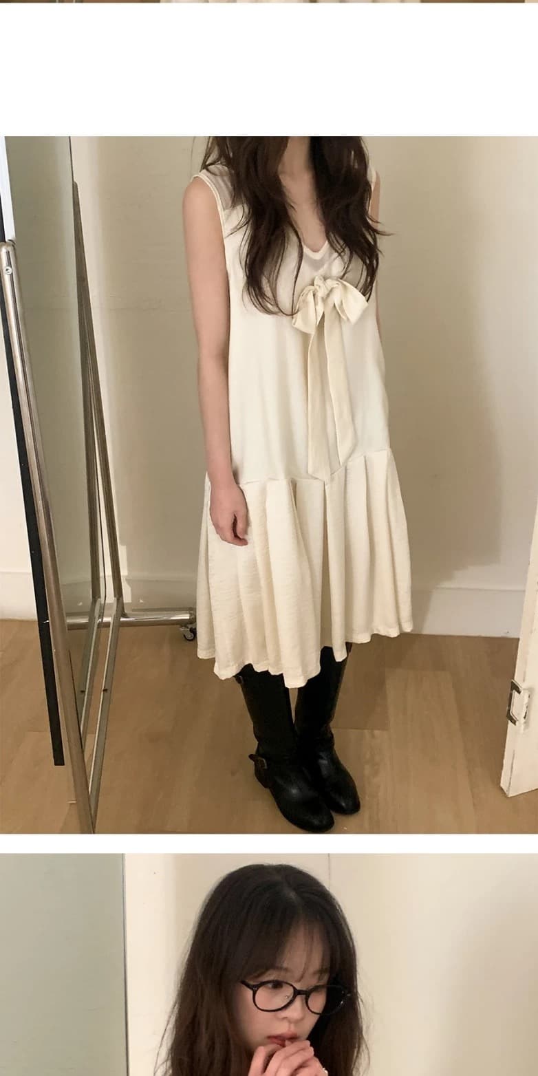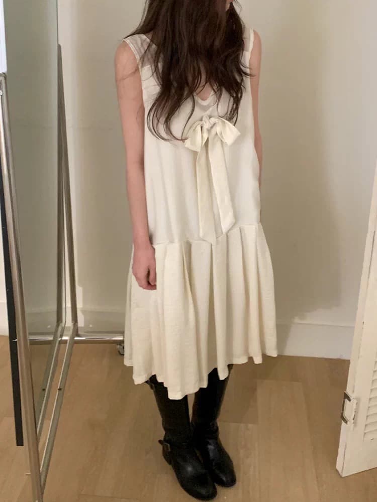 胸元の可愛いリボンが女性らしさをプラスし、ティアードスカートが優雅な印象を与えます。