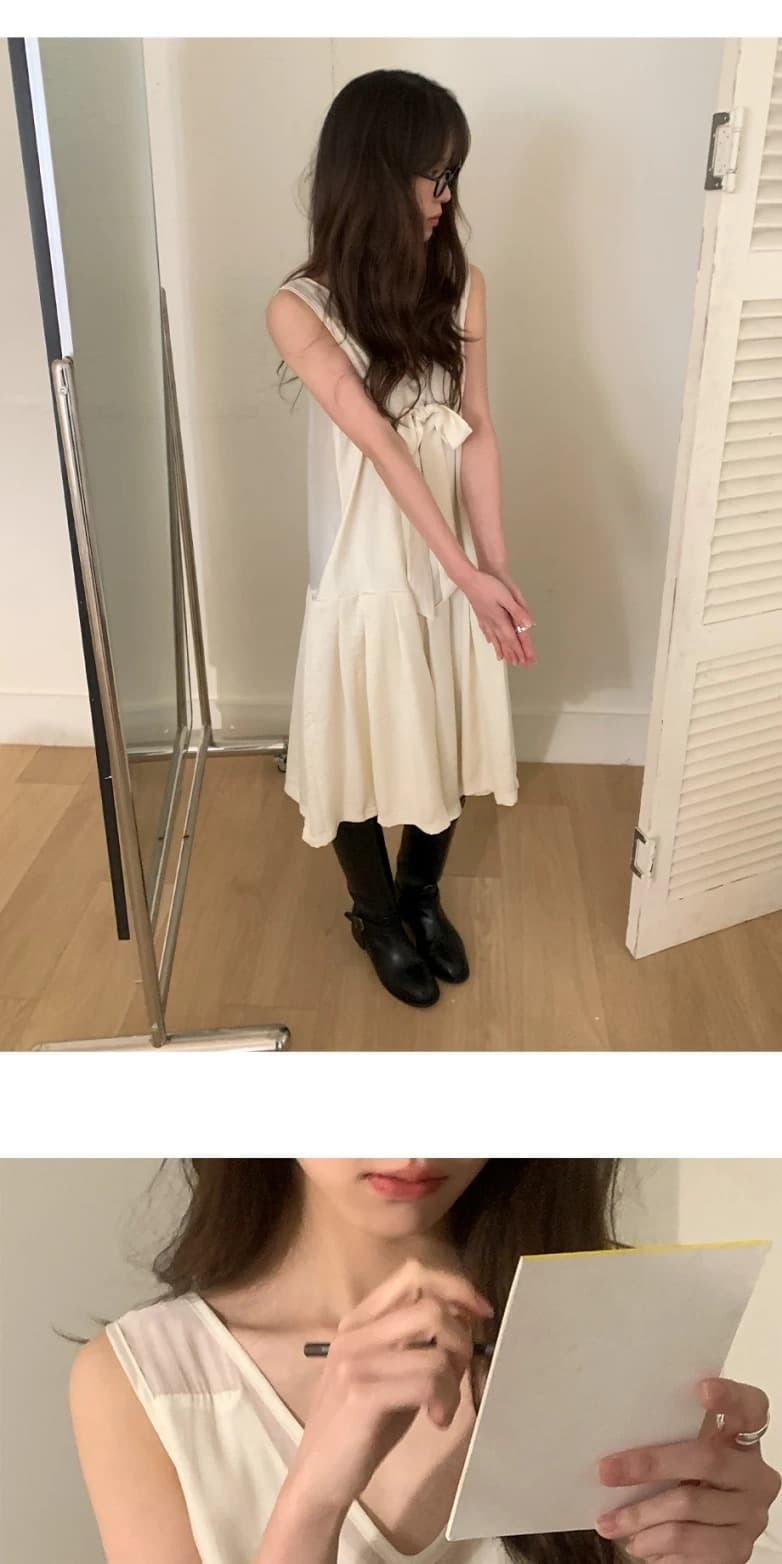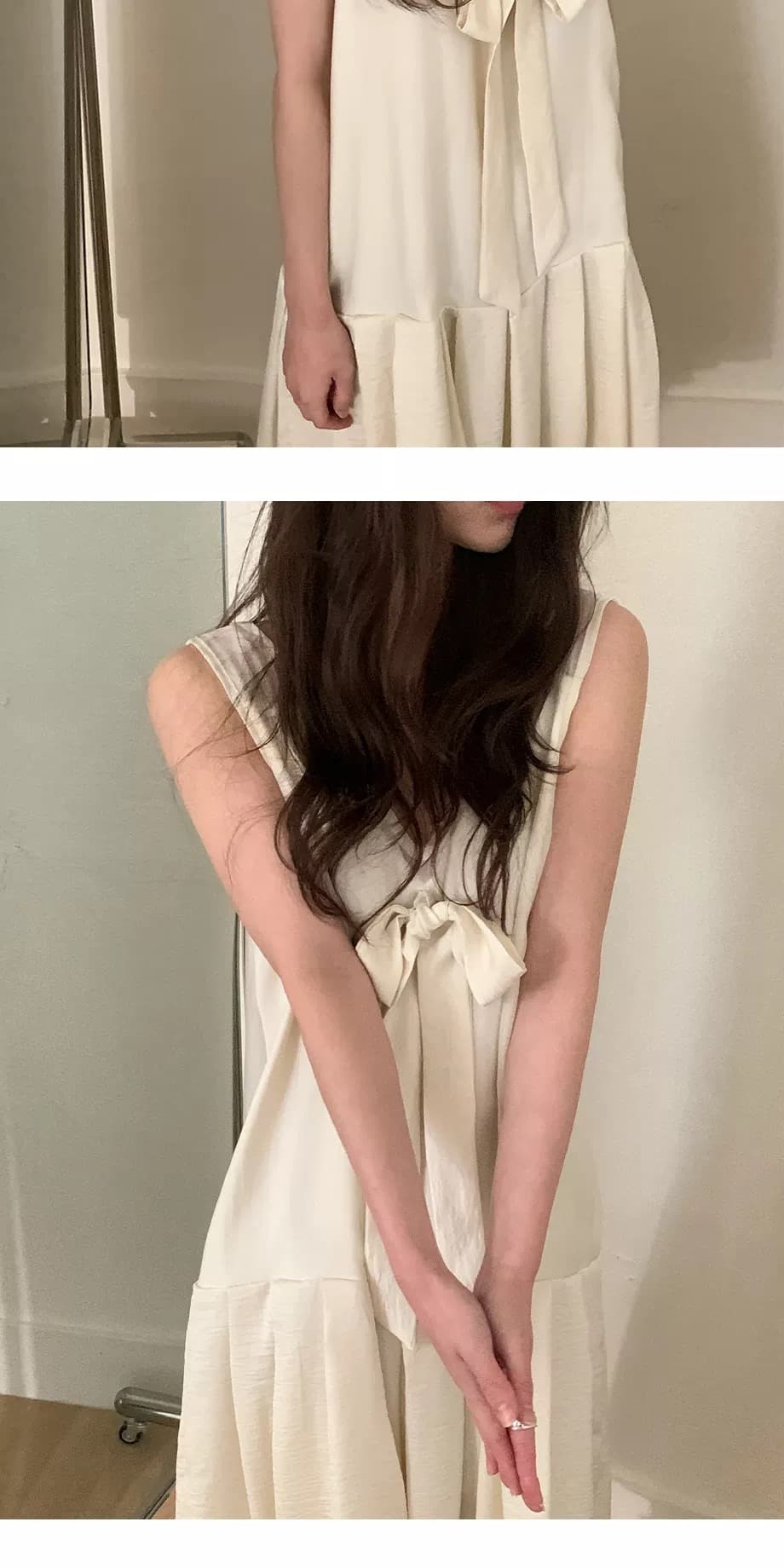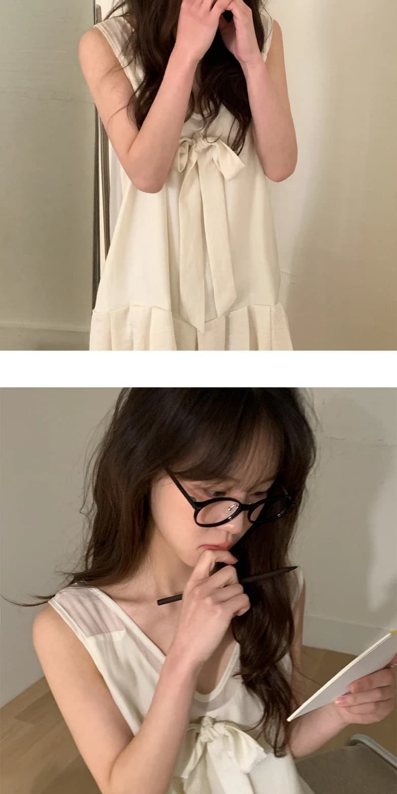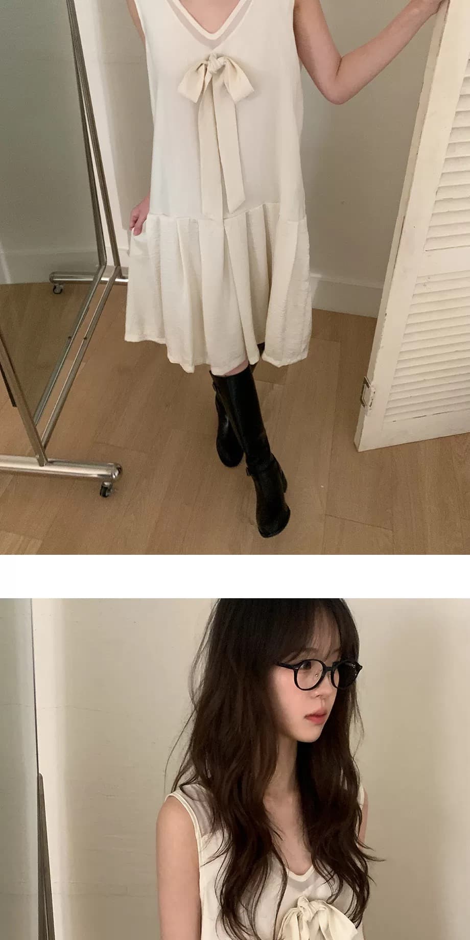 胸元の可愛いリボンが女性らしさをプラスし、ティアードスカートが優雅な印象を与えます。
