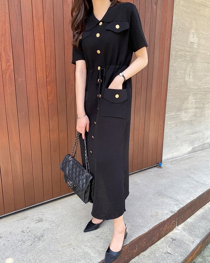 上品な襟付きデザインにフロントボタンとウエストベルトでスタイルアップ効果抜群。