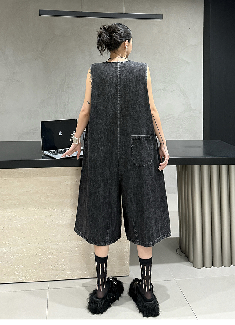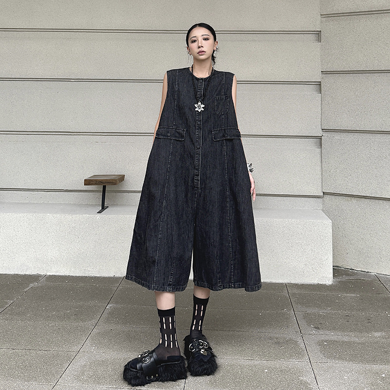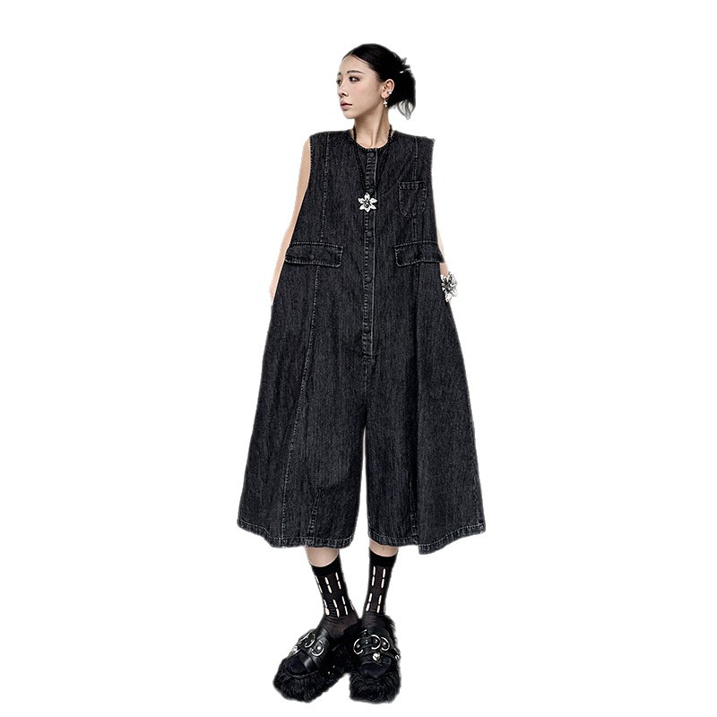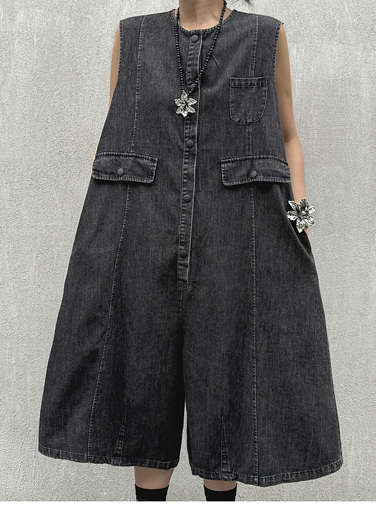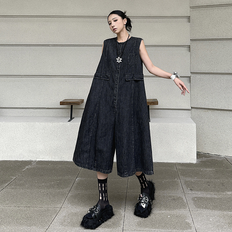 水洗い加工を施したデニム生地で、ゆったりとしたワイド