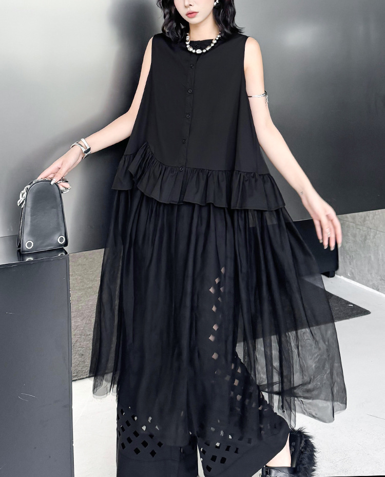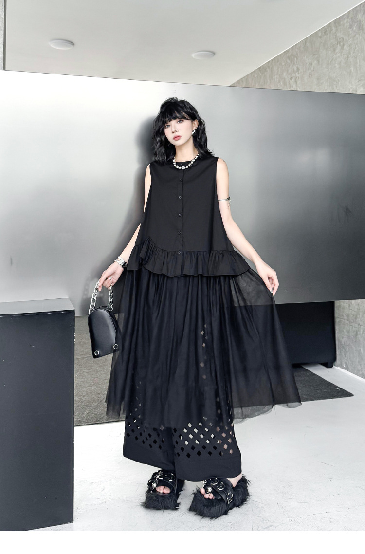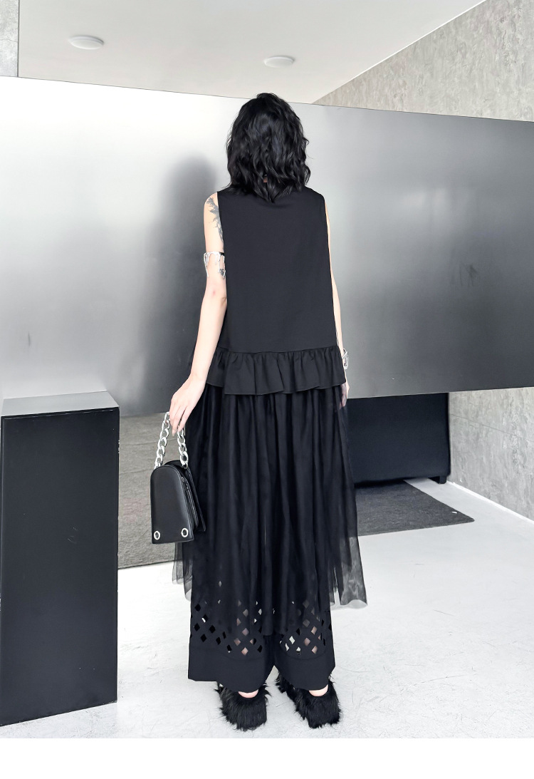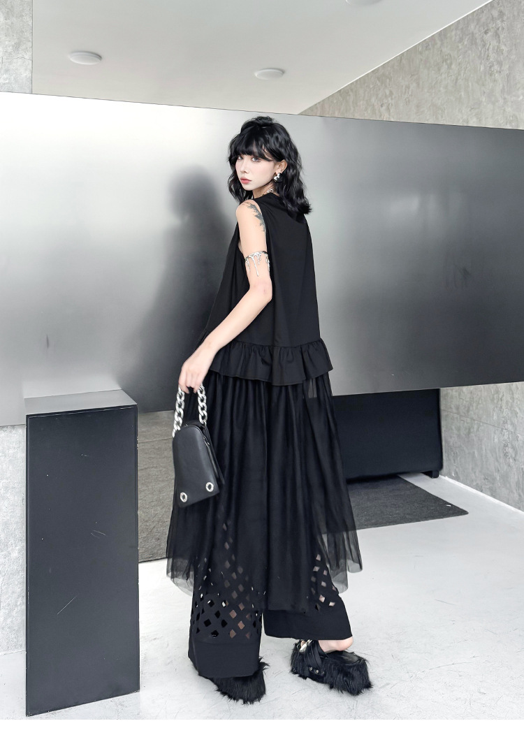 個性的なデザインが魅力のノースリーブロングワンピース。