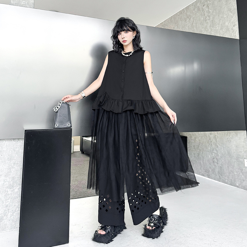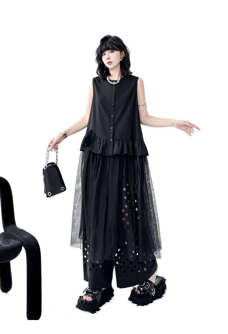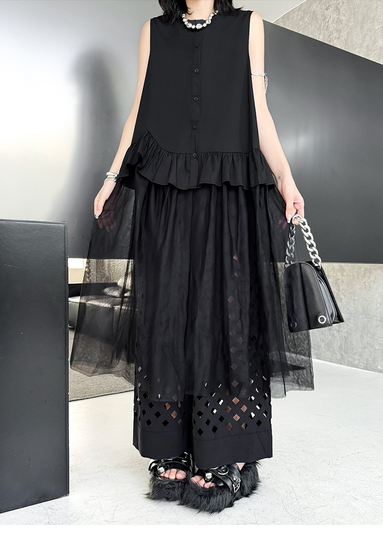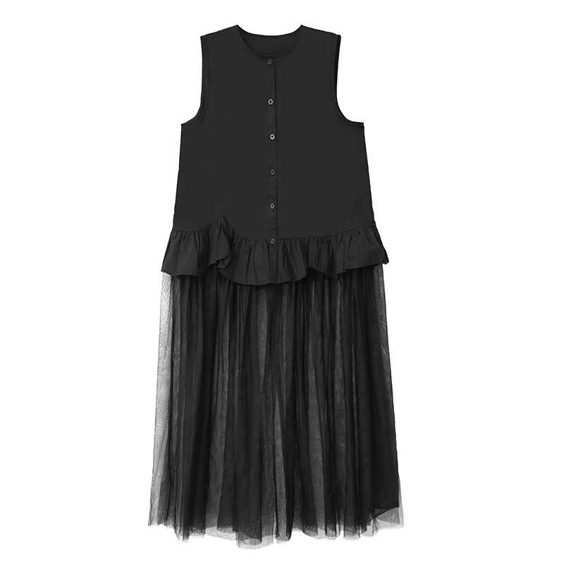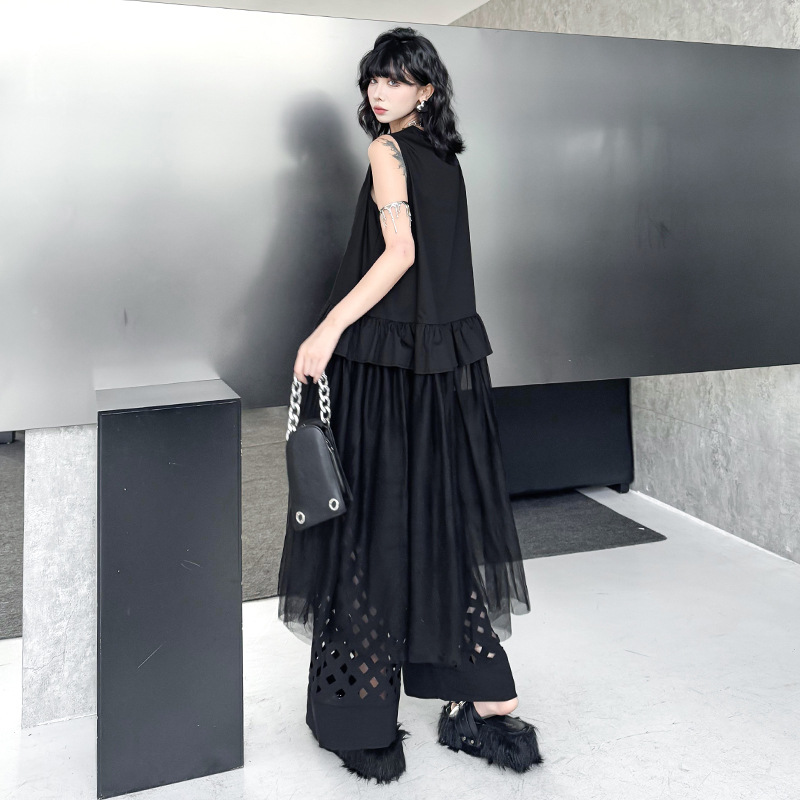 個性的なデザインが魅力のノースリーブロングワンピース。