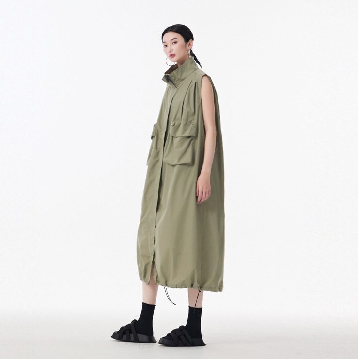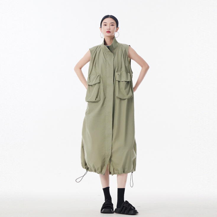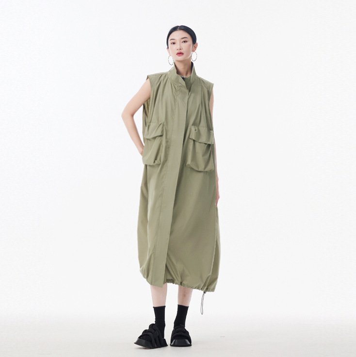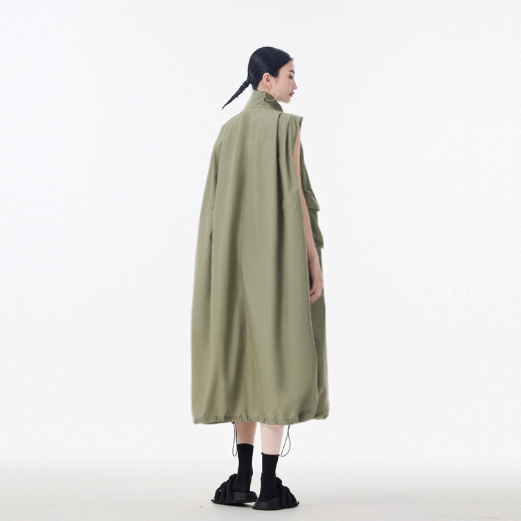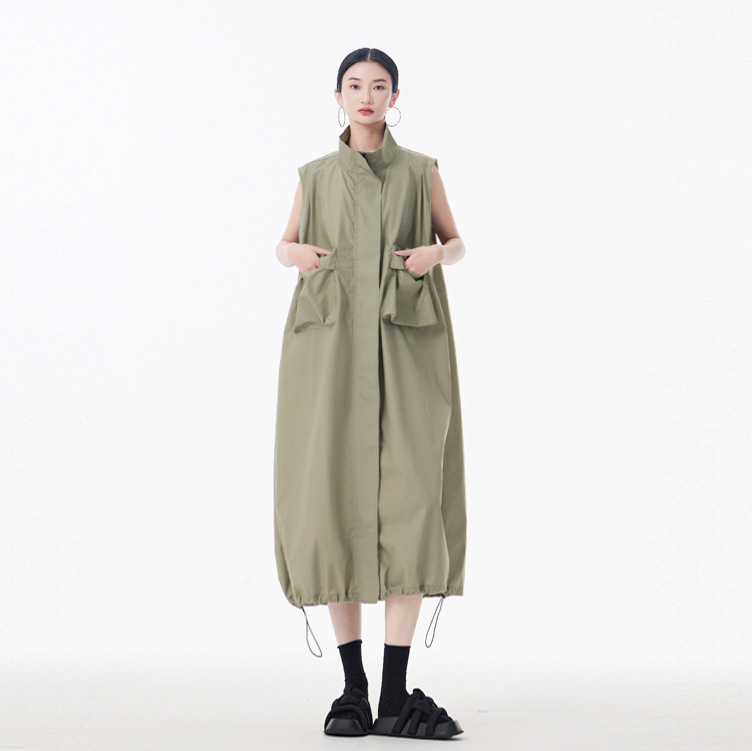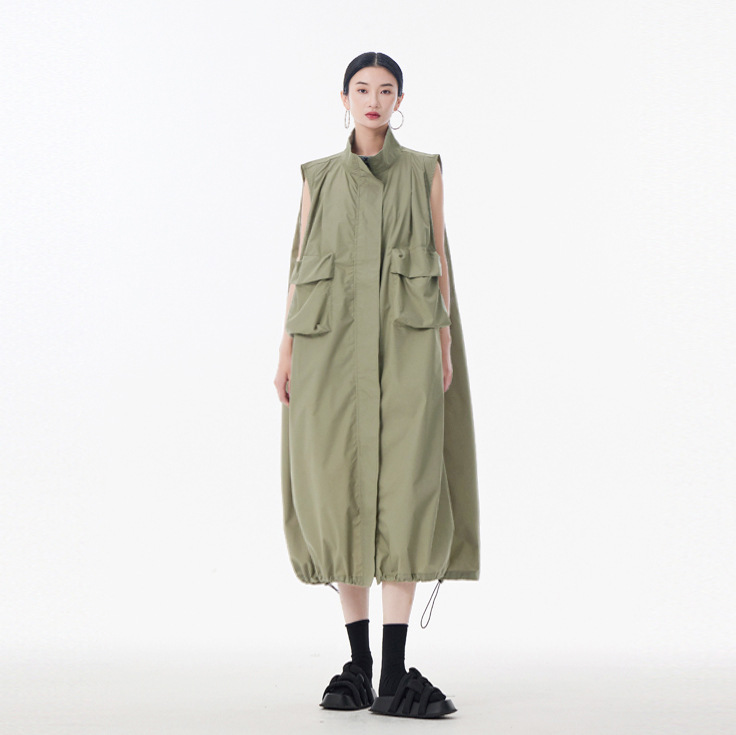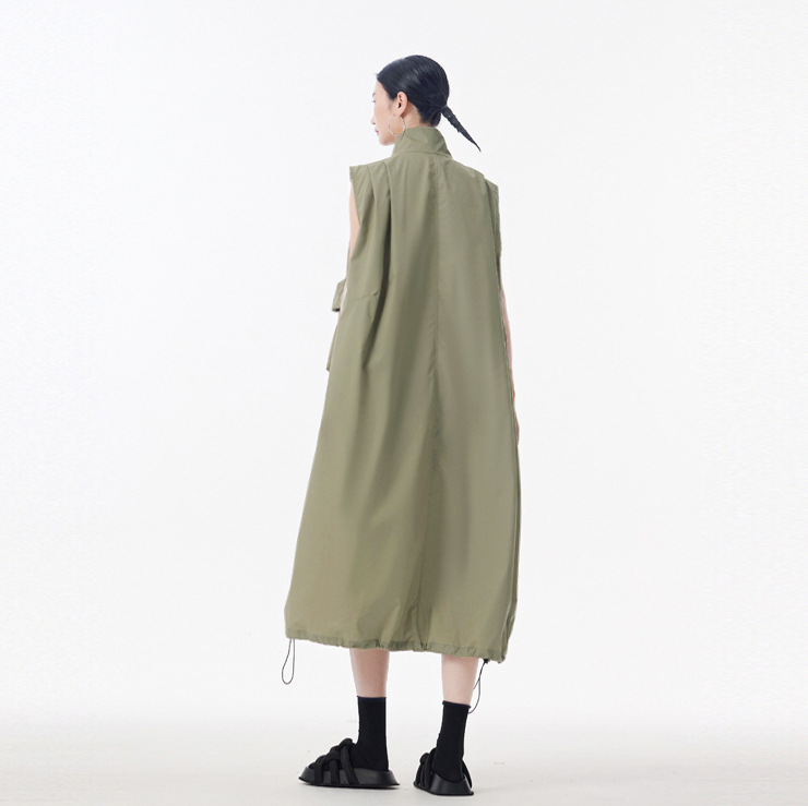 個性的なデザインが魅力的なノースリーブのロングワンピースです。