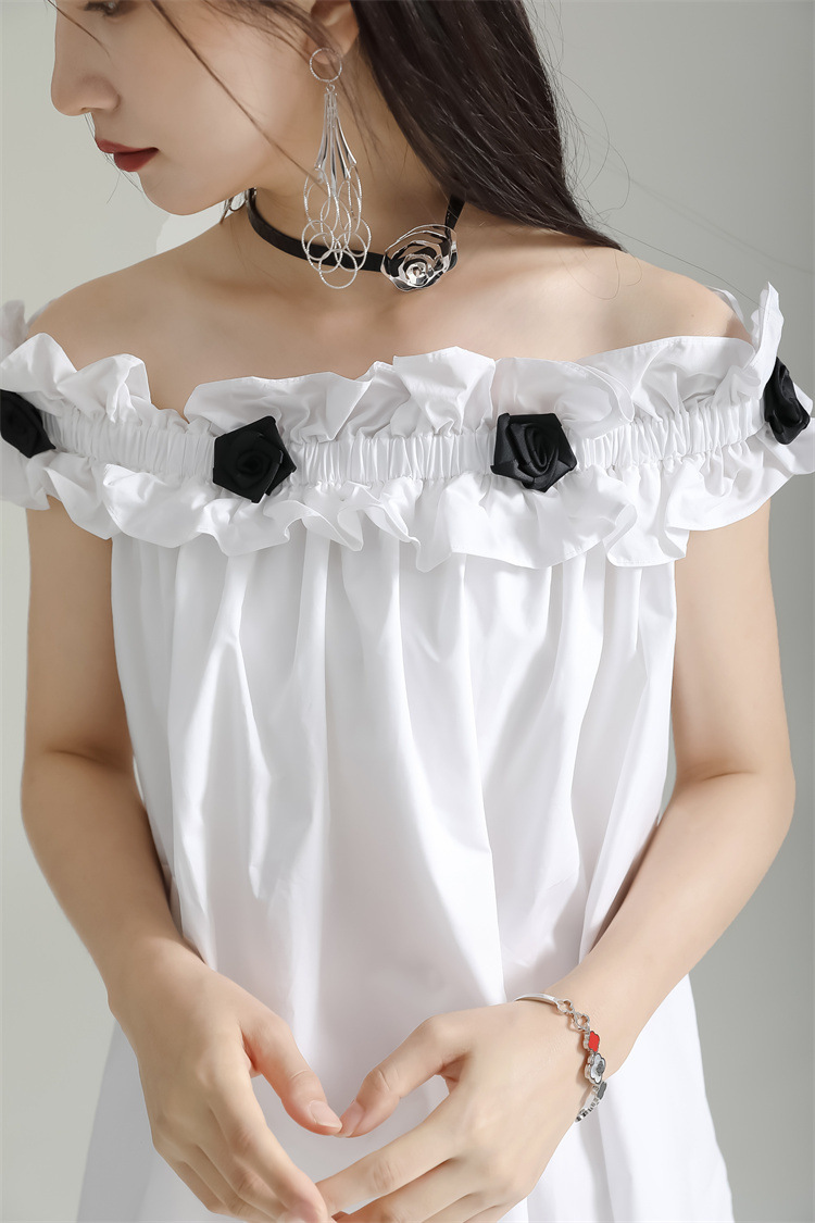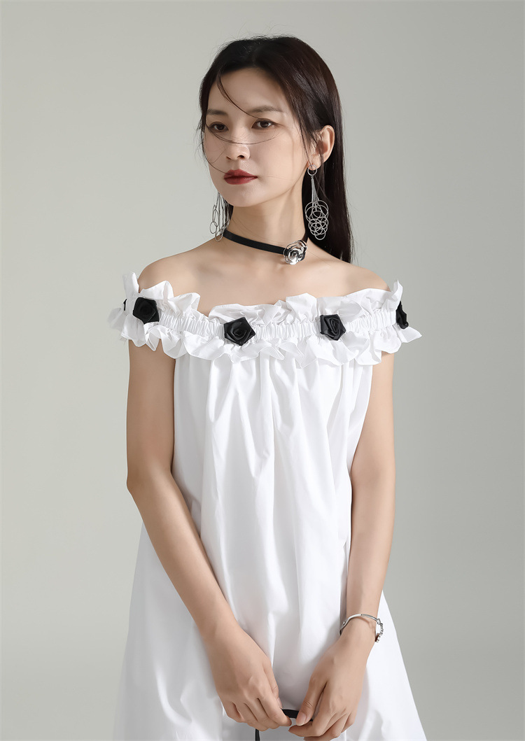 肩見せスタイルで女性らしさを演出し、夏のお出かけにぴったり。