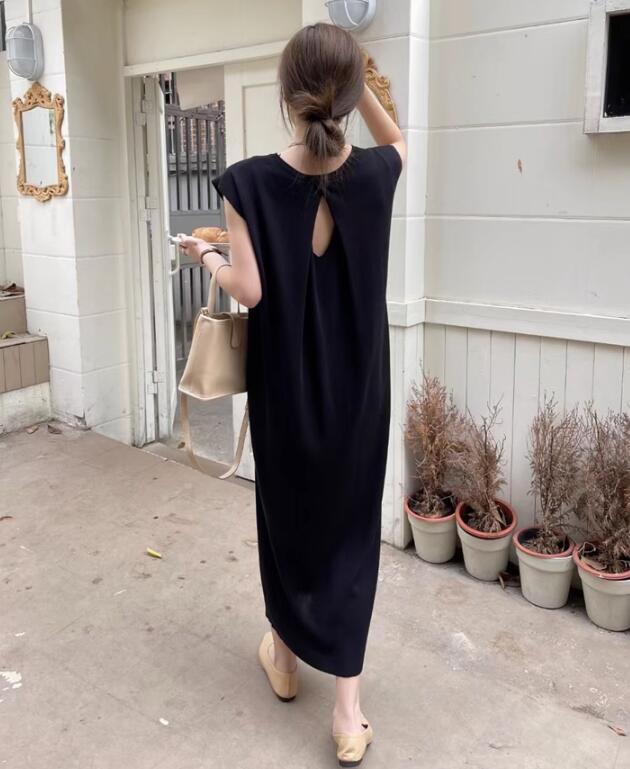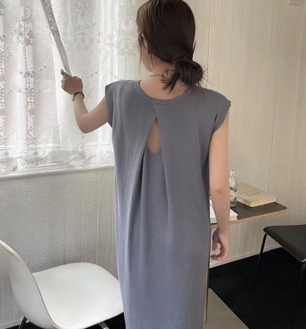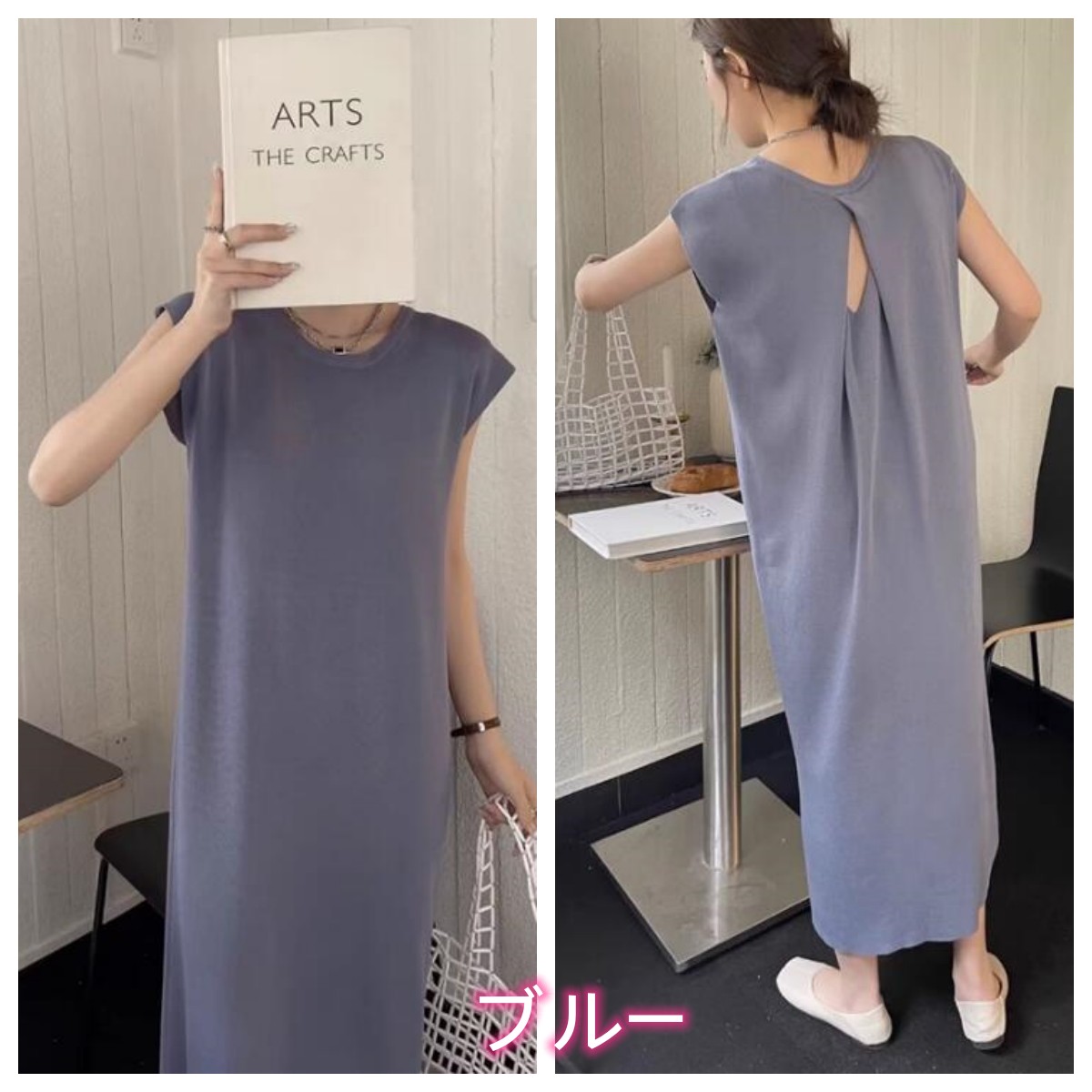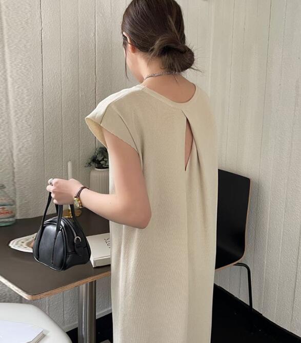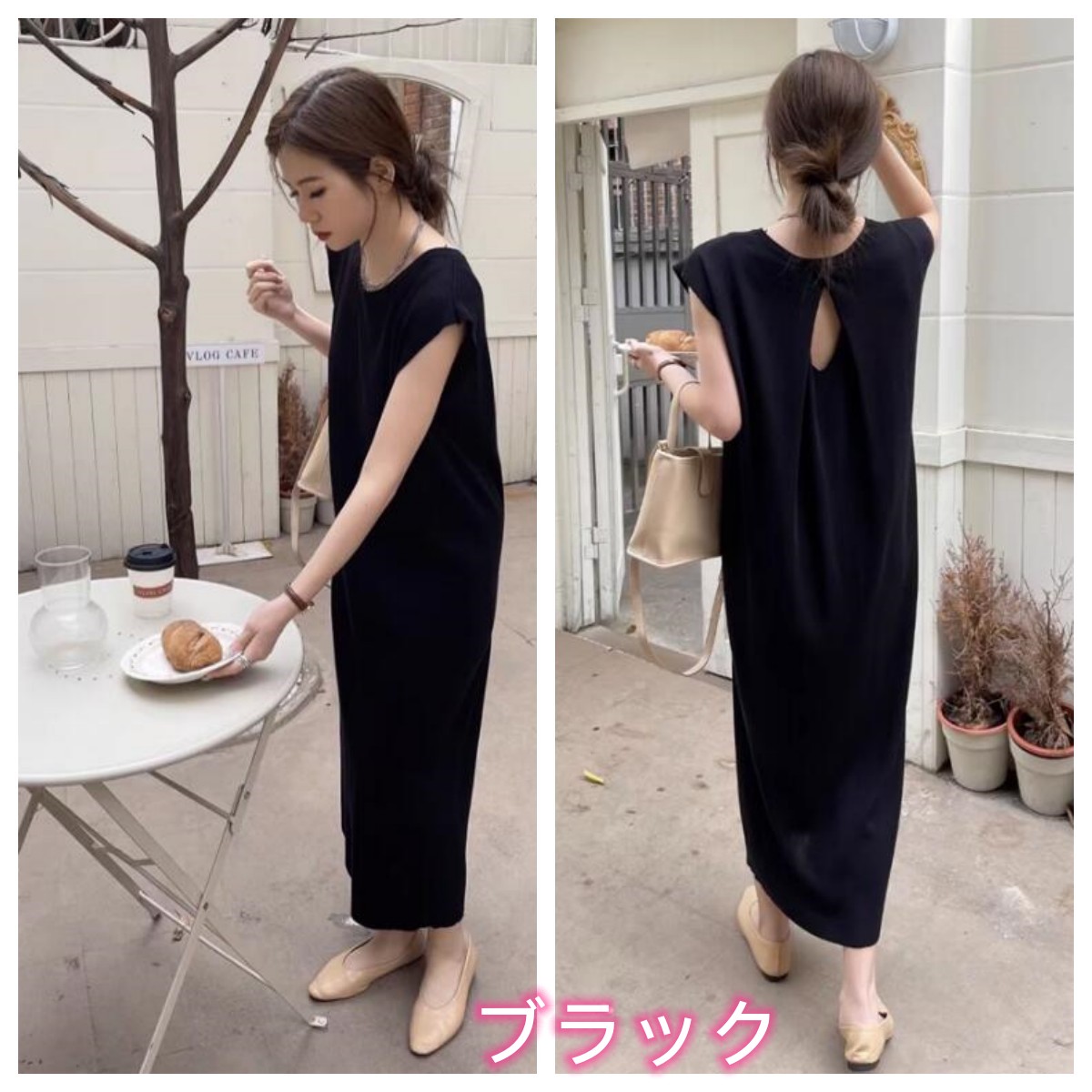 ゆったりとしたシルエットで体型カバーも叶い、背中の開きがさりげなく女性らしさを演出します。