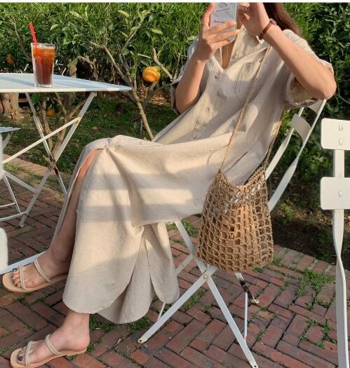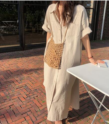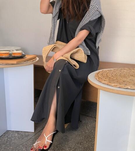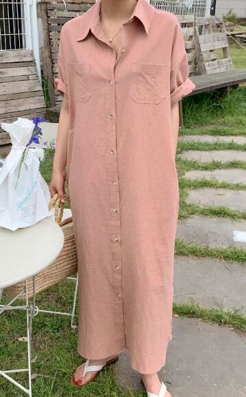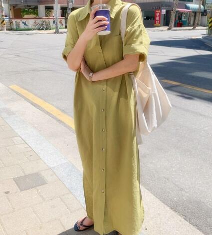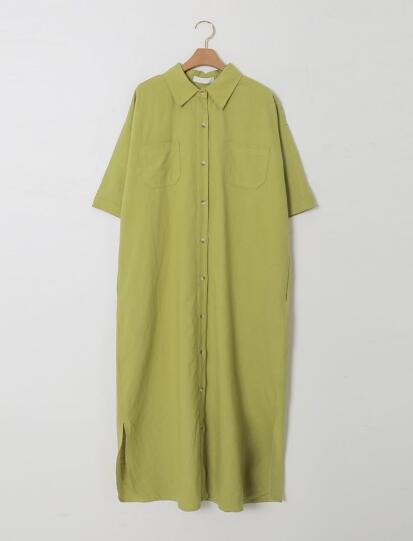ゆったりとした着心地が魅力のシャツ型ロングワンピースです。
