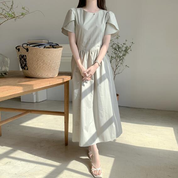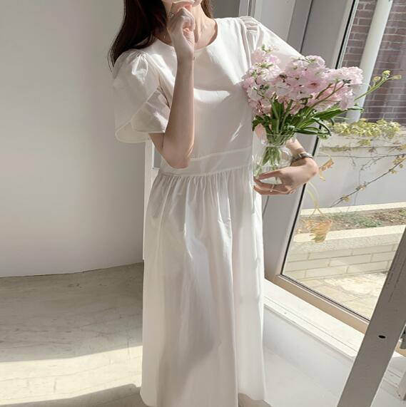 ロングワンピースとして一枚でコーディネートが完成する万能アイテム。