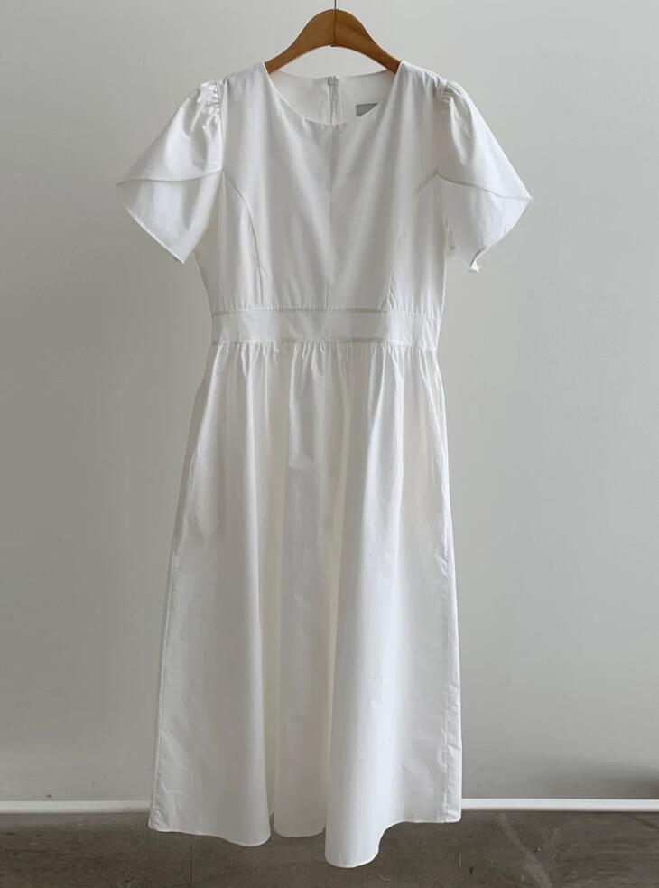 上品な丸首デザインのシャツワンピースです。