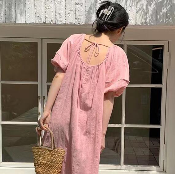 女性らしさを演出するフレア袖が魅力的なロングワンピースです。 ゆったりとした着心地で体型カバーも叶えながら、上品な印象を与えます。 カジュアルからきれいめまで幅広いシーンで活躍する、おしゃれな一枚です。
