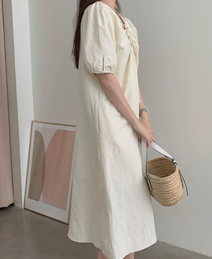 女性らしいフレアシルエットが美しいロングワンピースです。