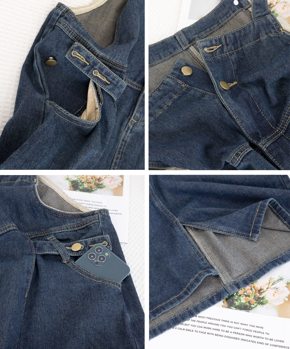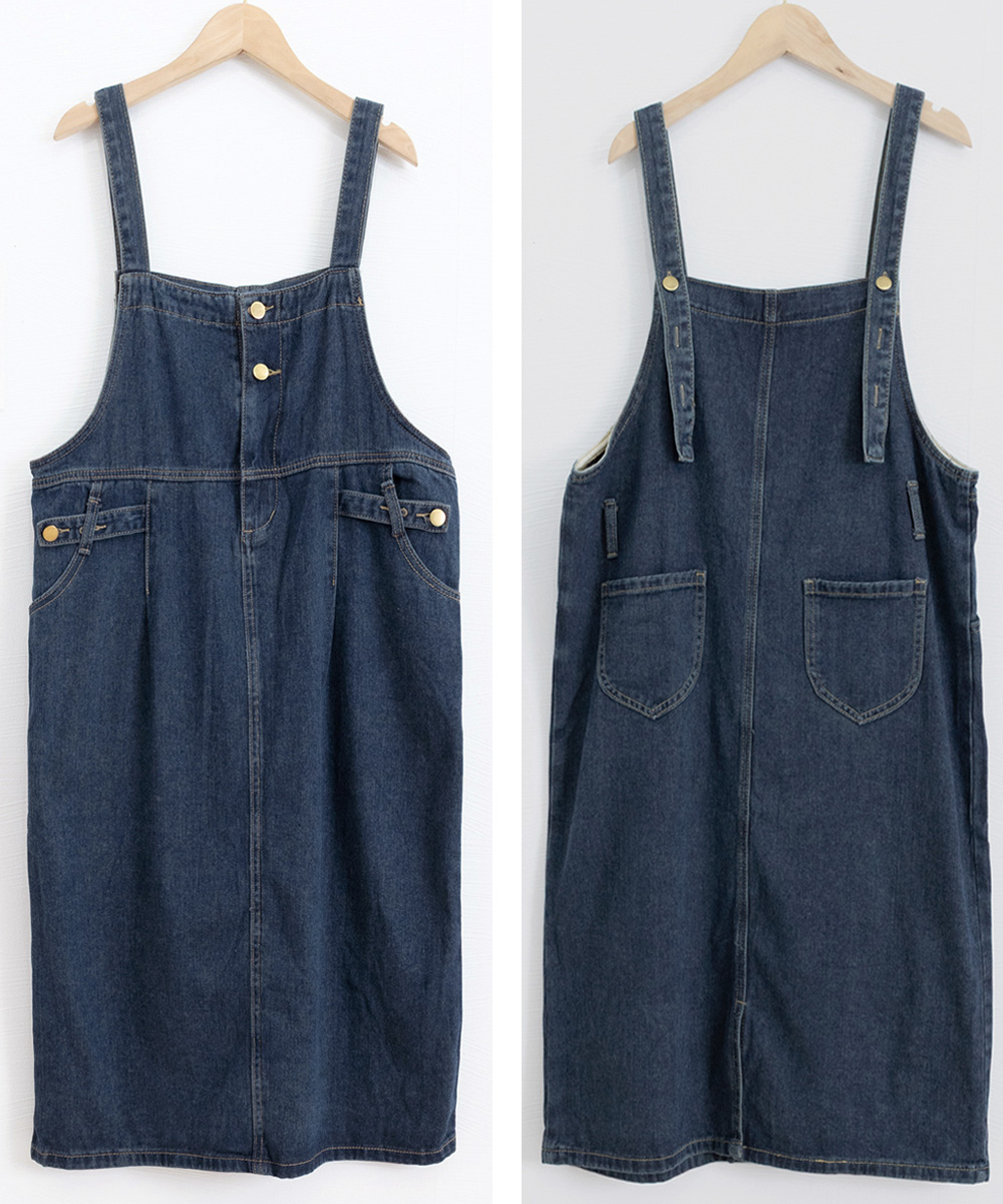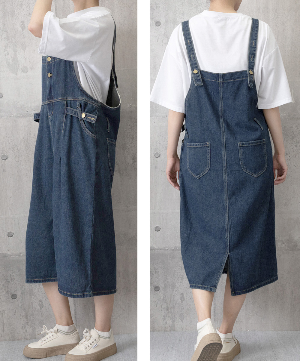 素材:綿65%+ポリエステル35% カラー:サックスブルー/インディゴブルー サイズ:ワンサイズ 総丈(ボタンで調節可能:約108-118cm ウエスト(ボタンで調節可能:約104-108cm ヒップ:約110cm 裏地:なし 伸縮性:なし 透け感:なし ※すべて平置きサイズです(採寸方法違いより、多少の誤差がございますので、ご了承ください)。 ※商品の細部仕様は多少異なる場合がございます。予めご了承の上、ご注文お願い致します。