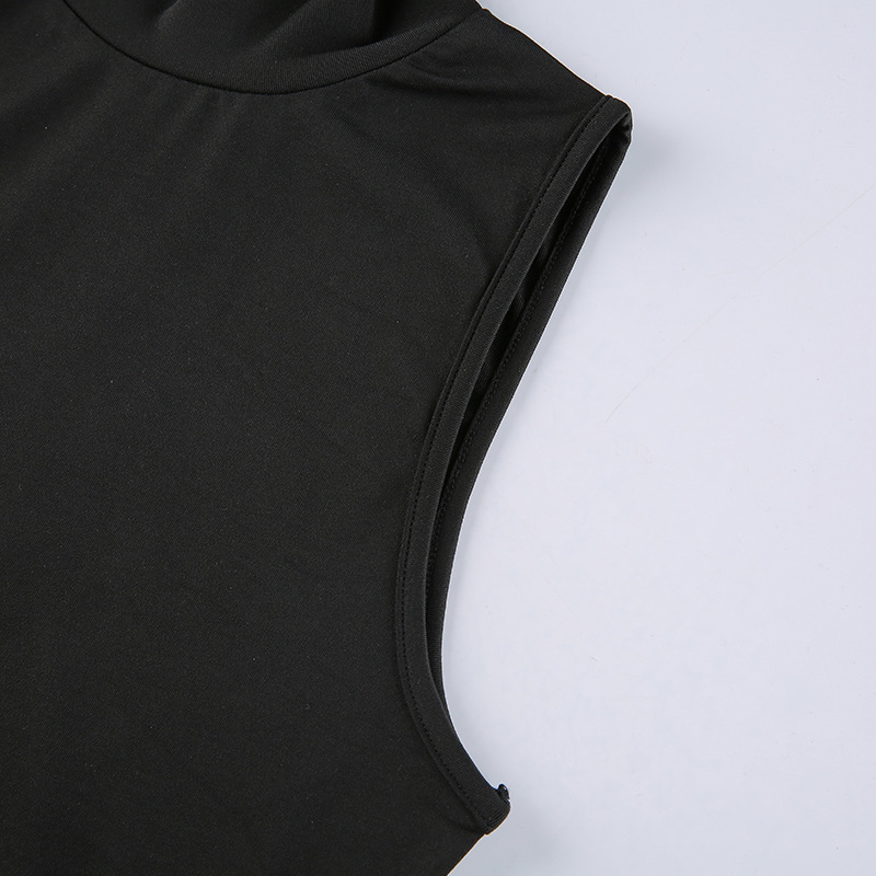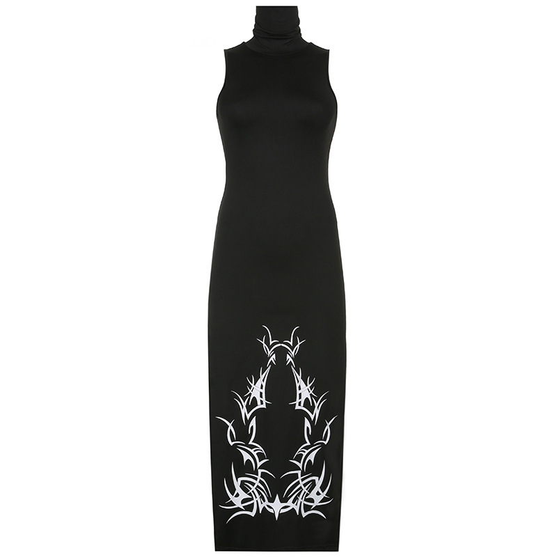 エレガントで上品な着心地を提供するハイネック仕様のノースリーブロングワンピースです。