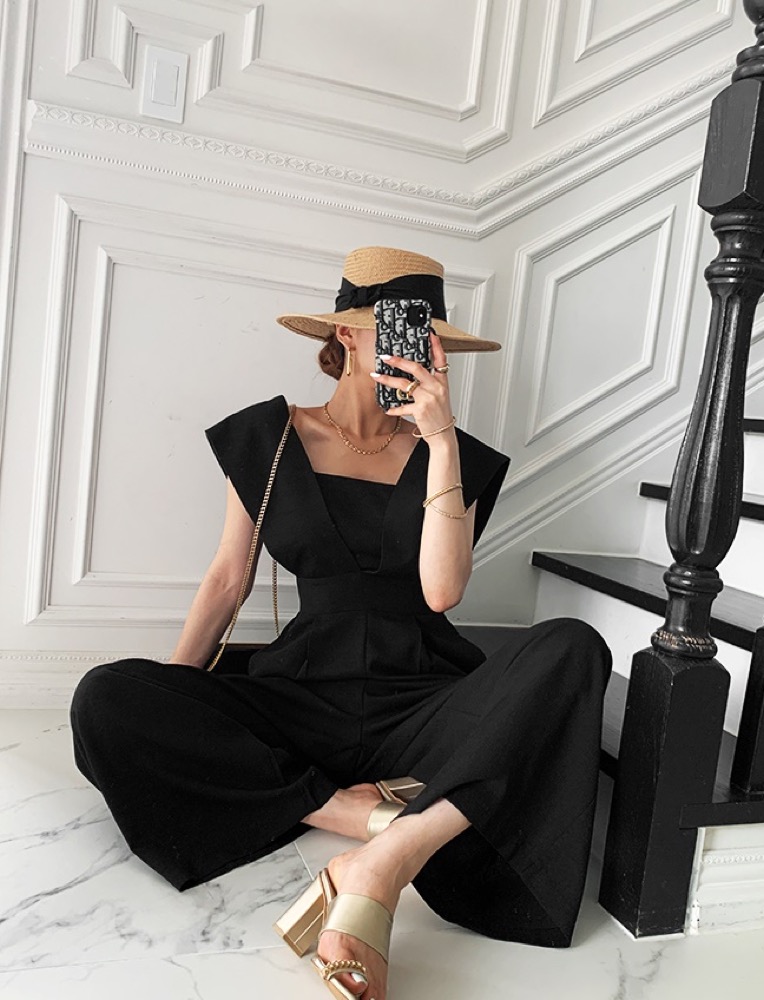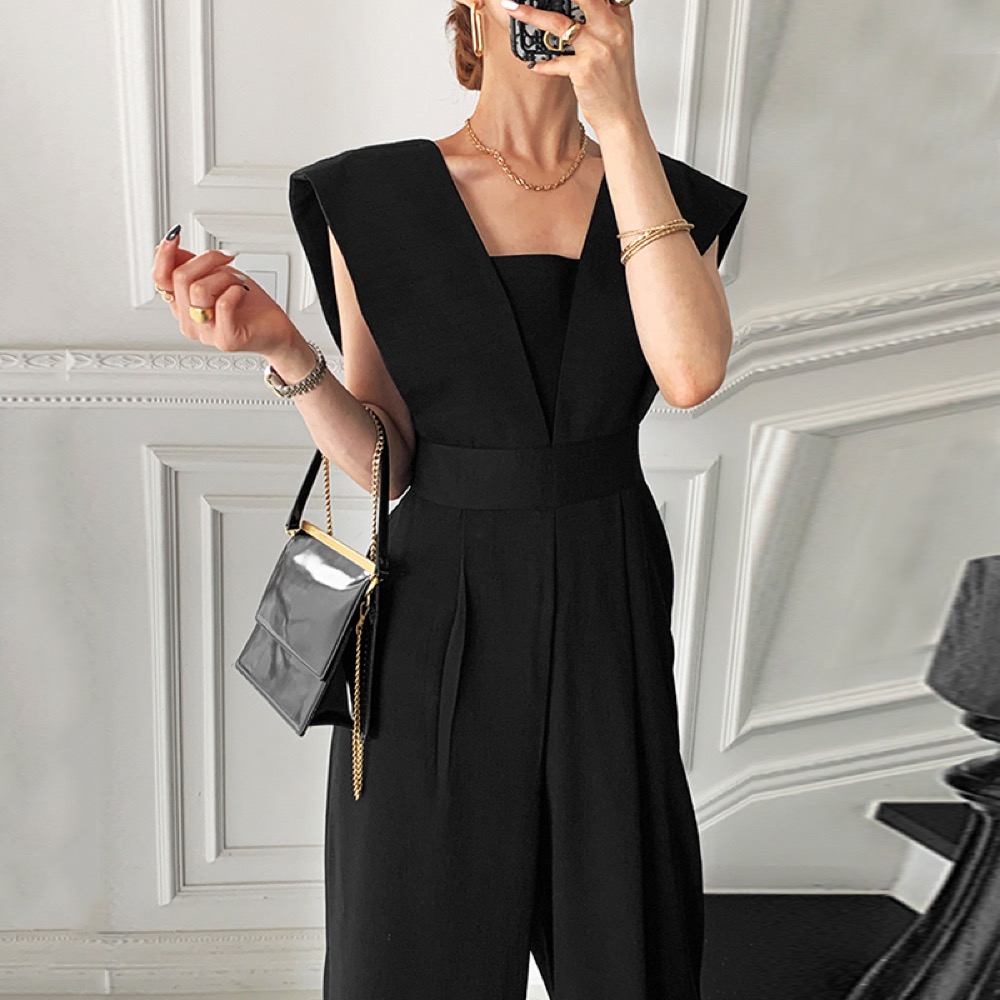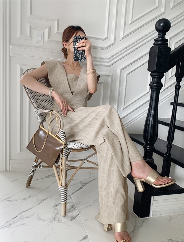 国内倉庫から発送される高品質なノースリーブオールインワンです。