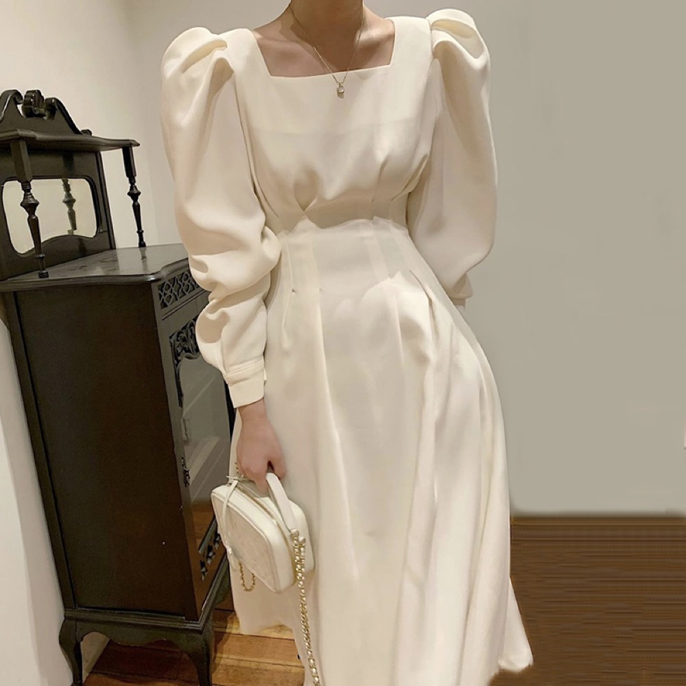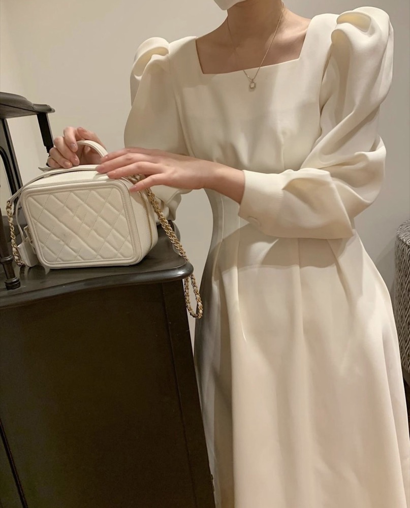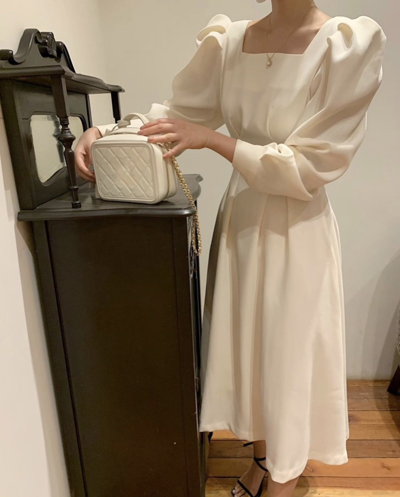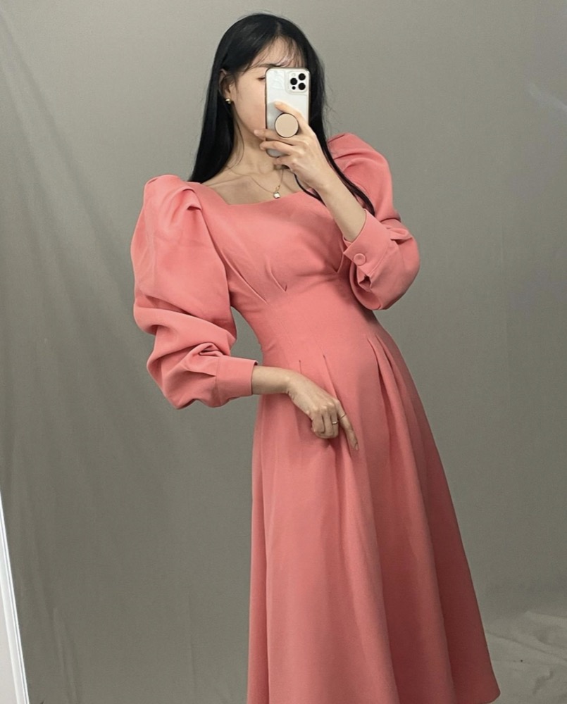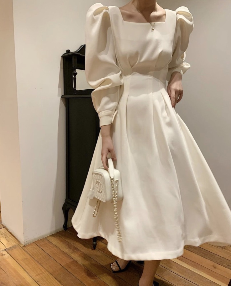 上品なパフスリーブが印象的なロングワンピースシャツ。