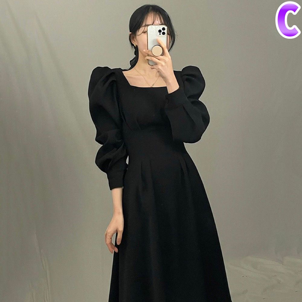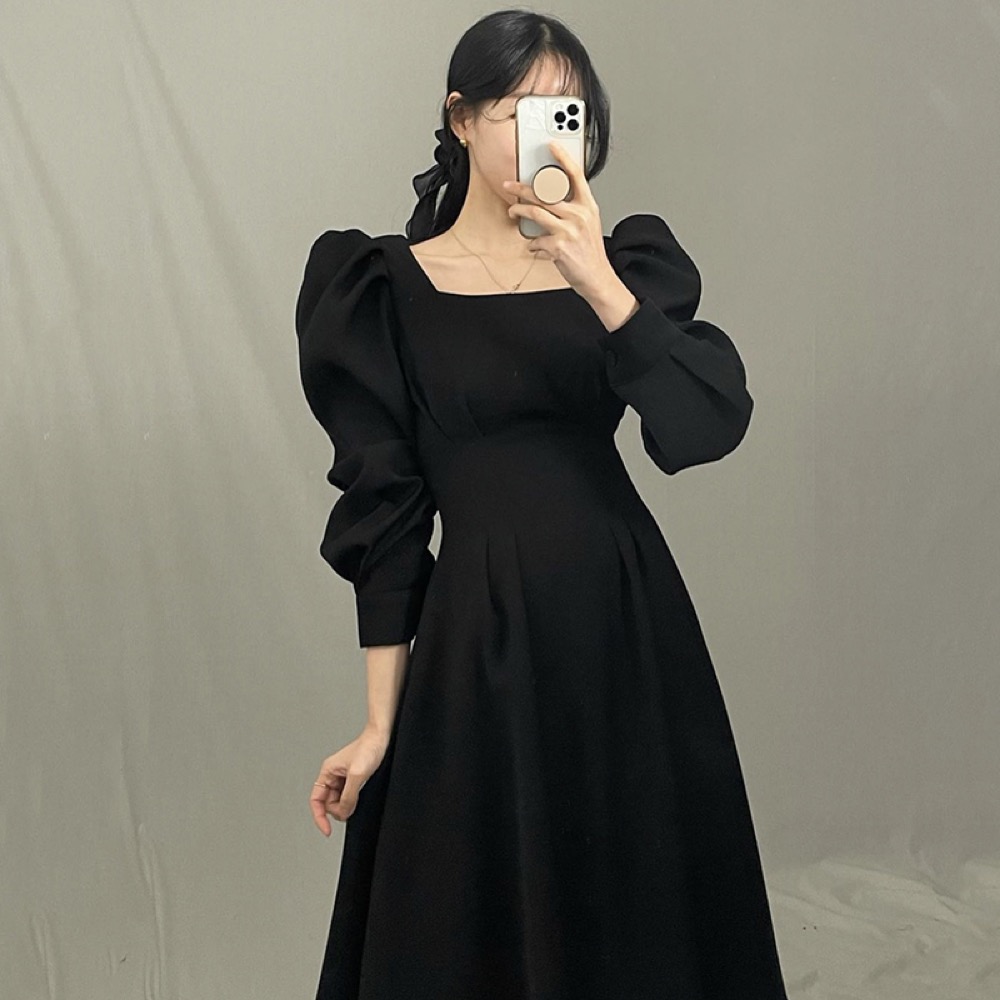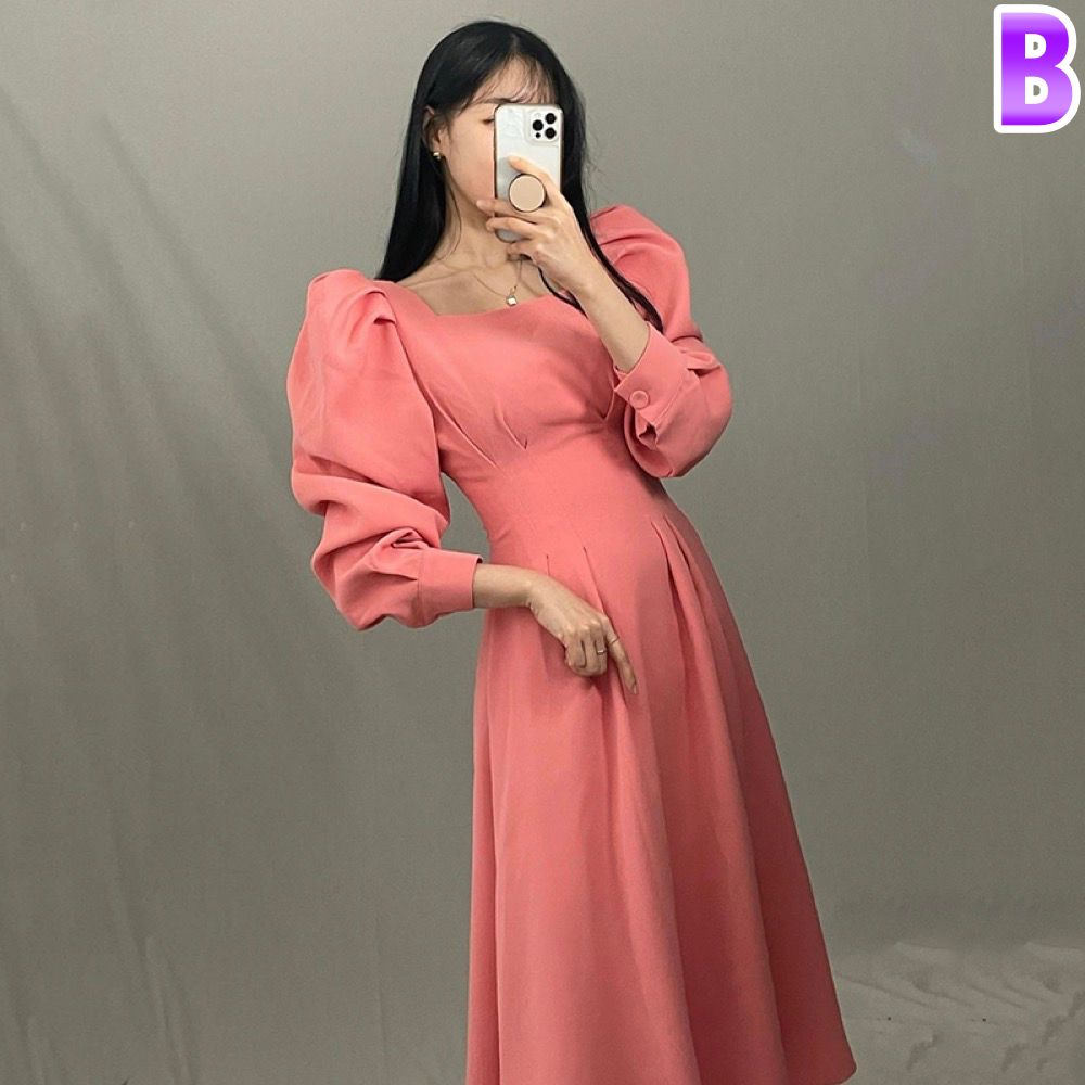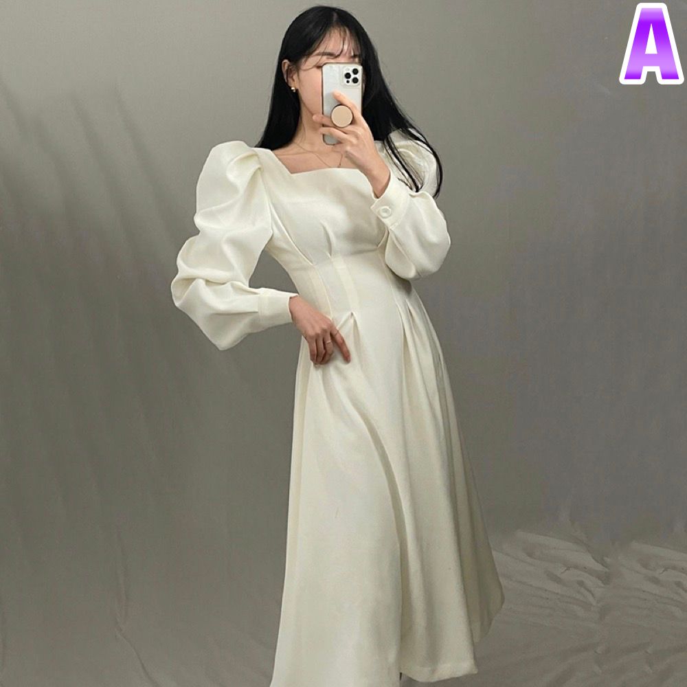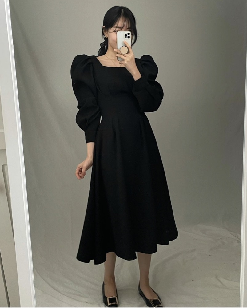上品なパフスリーブが印象的なロングワンピースシャツ。