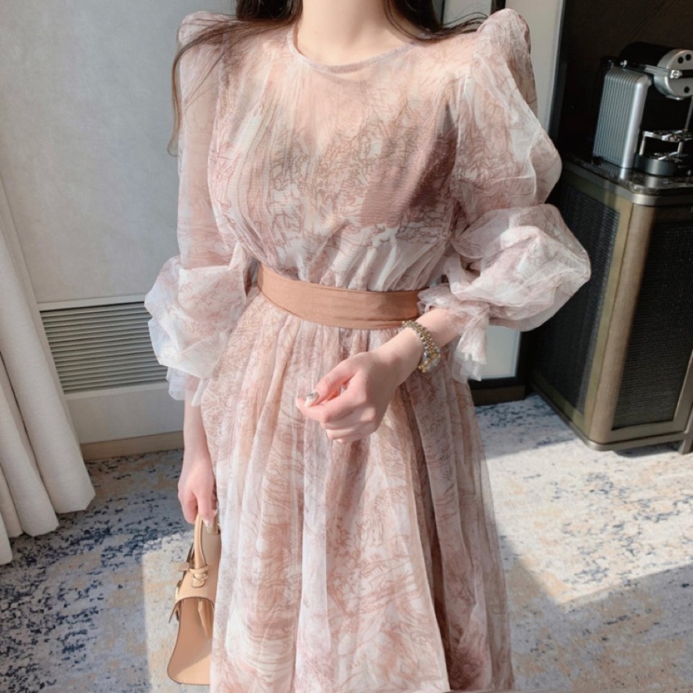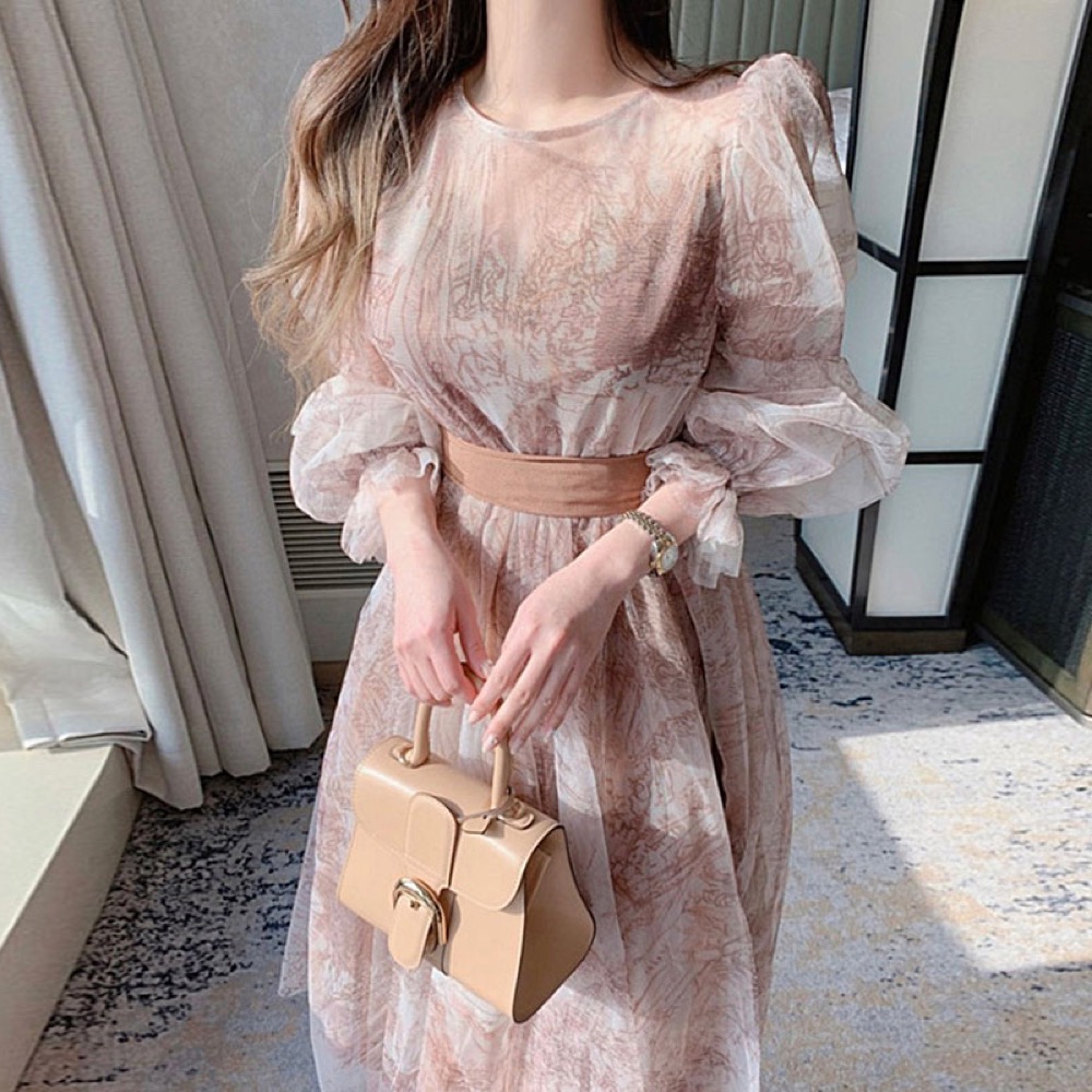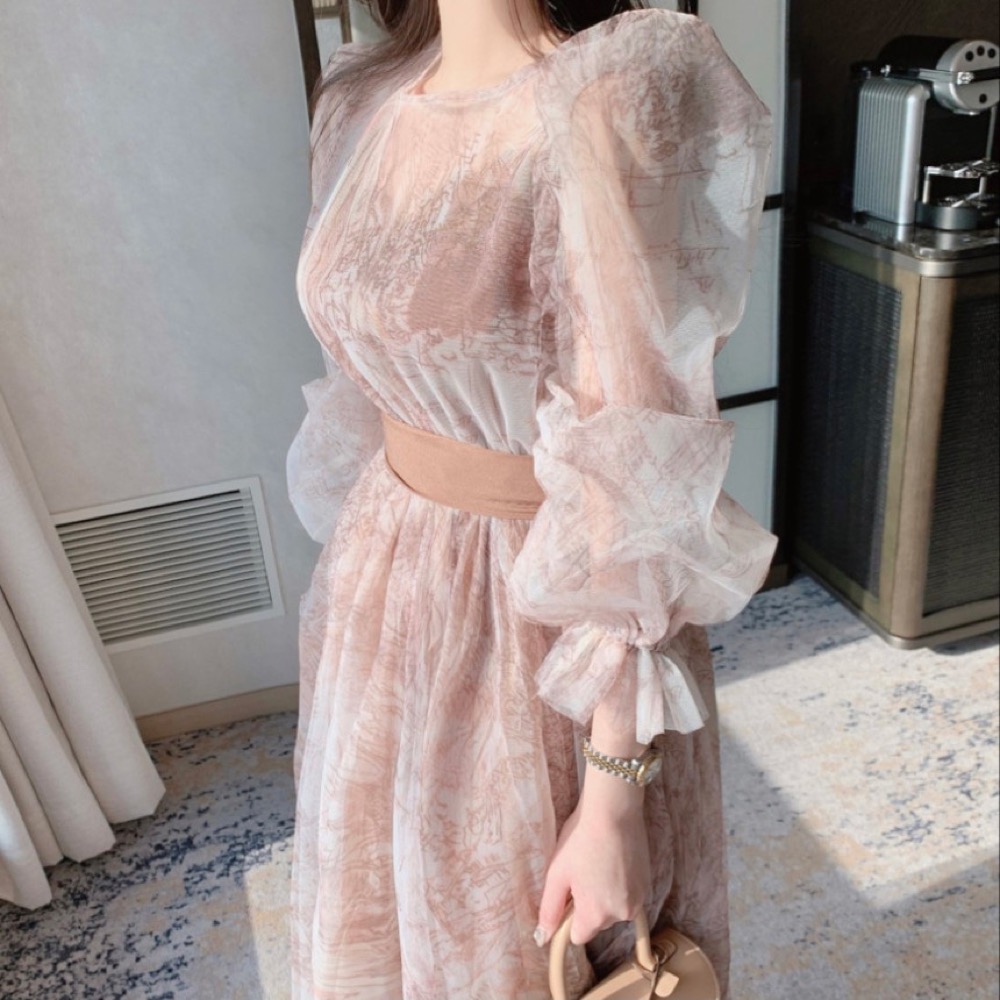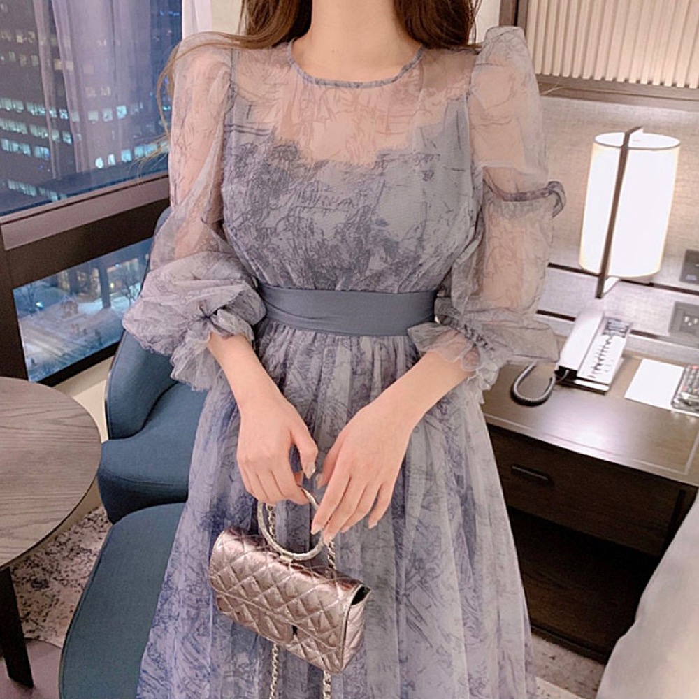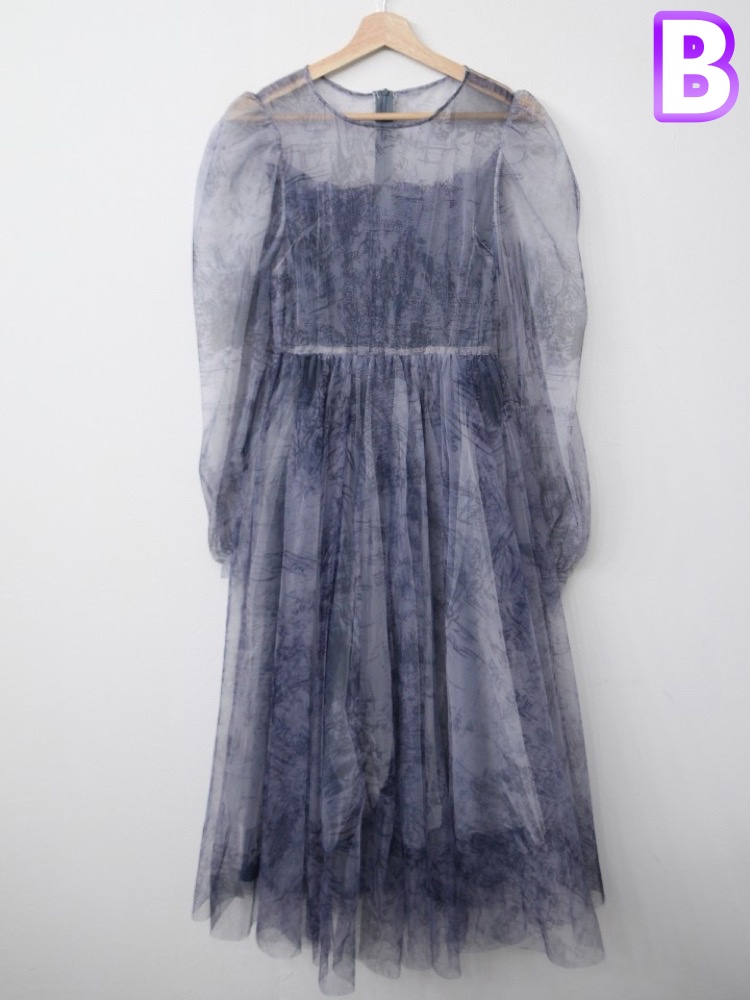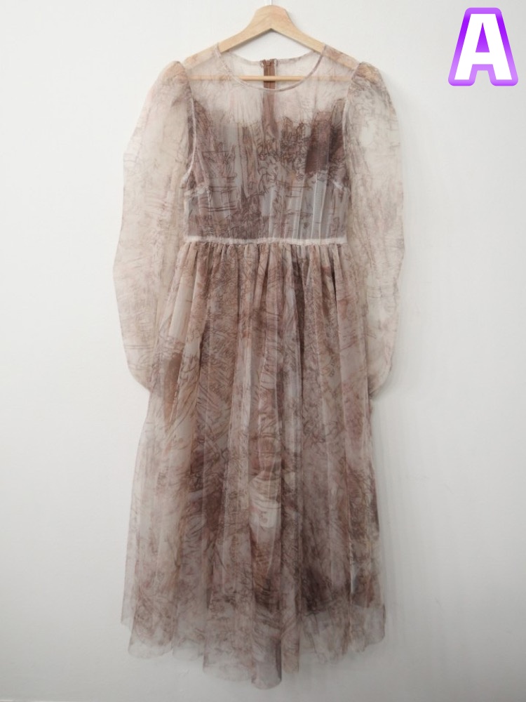 透け感のあるレース素材を使用したエレガントなノースリーブロングワンピースです。
