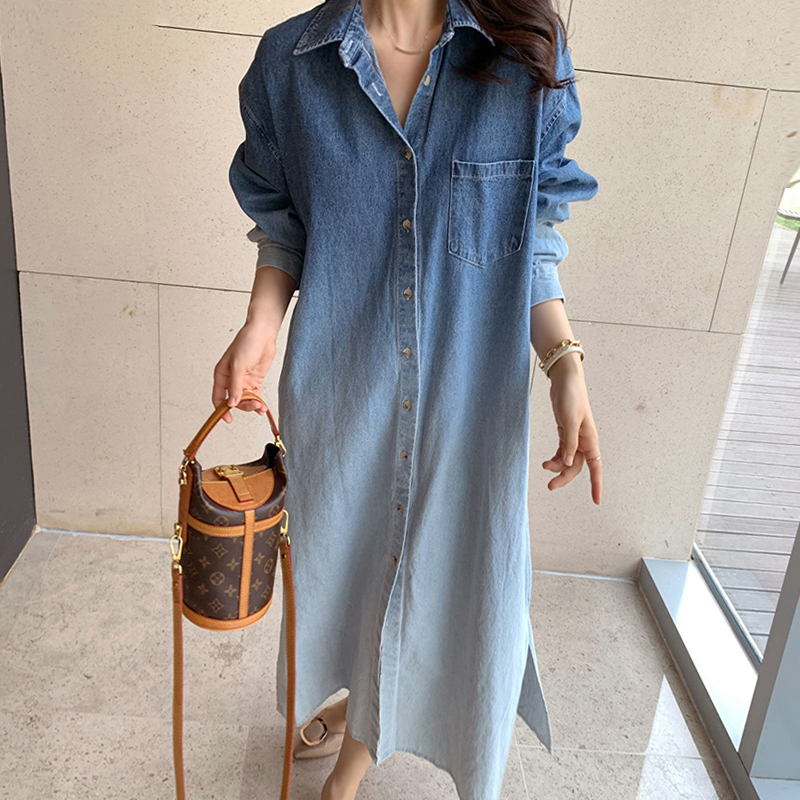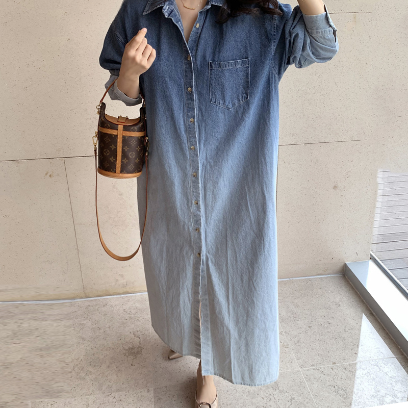 上品なグラデーションが美しいデニムのロングワンピースです。