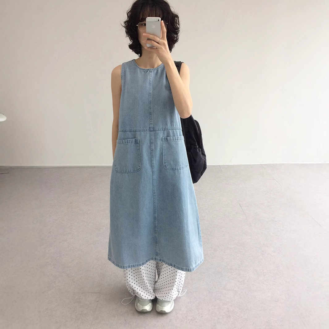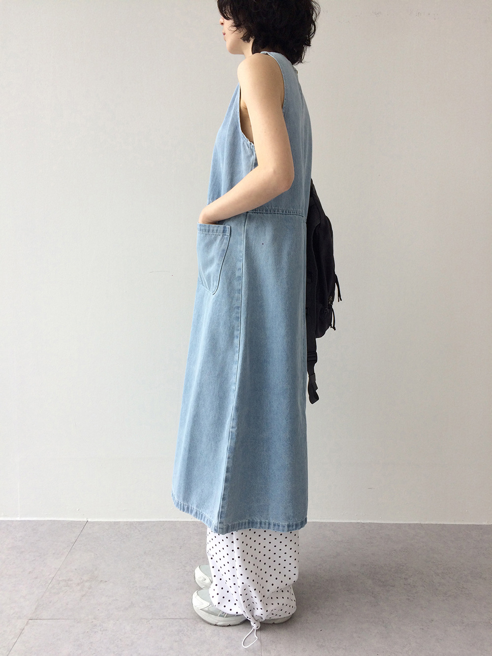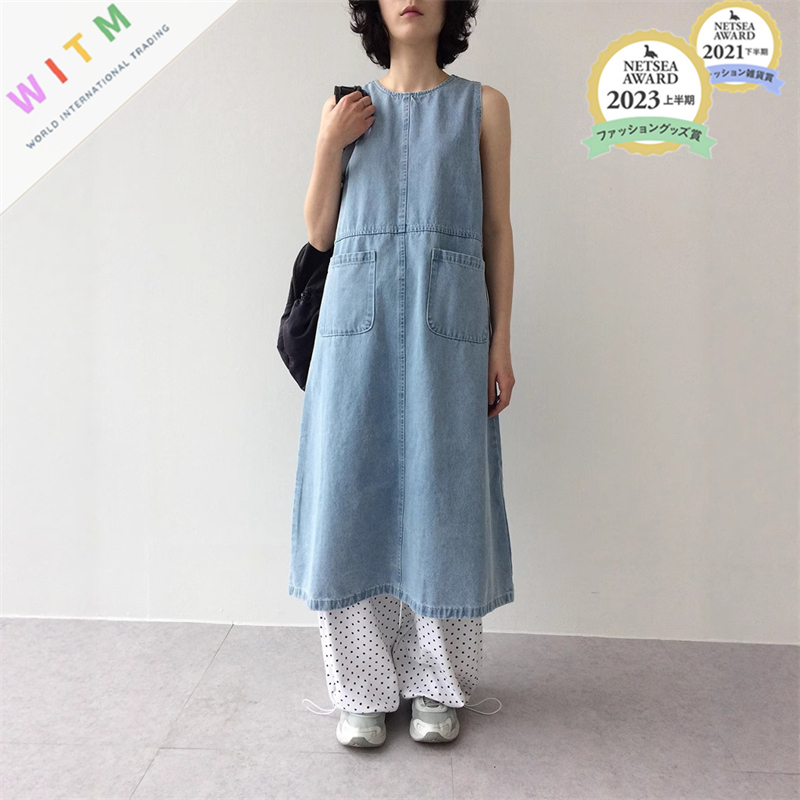春夏にぴったりなデニム素材のロングワンピースは今季注目の一着です。