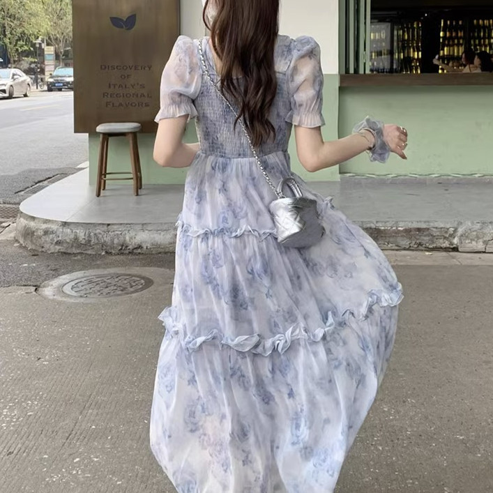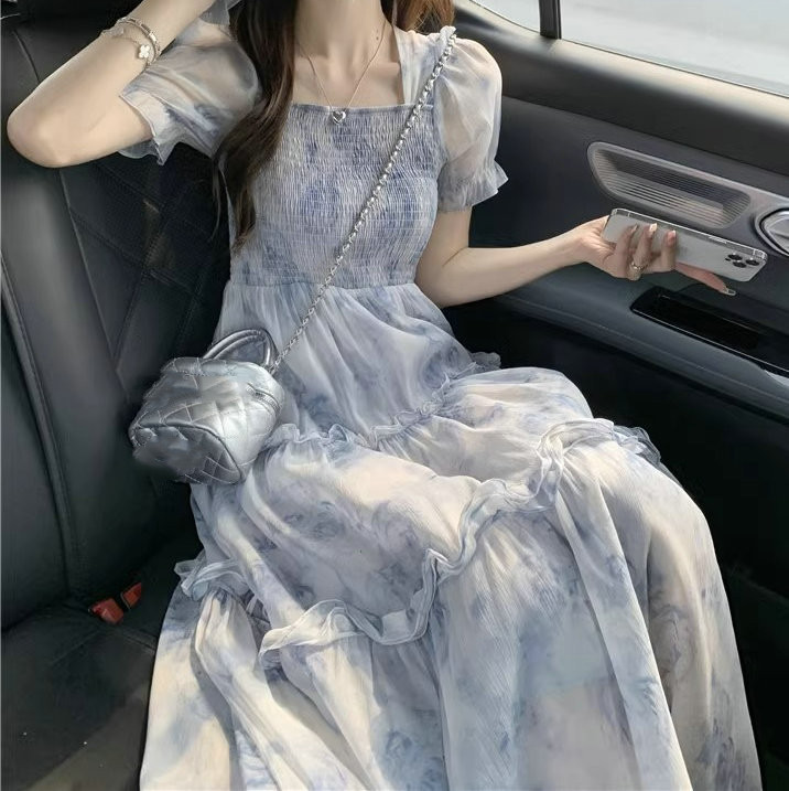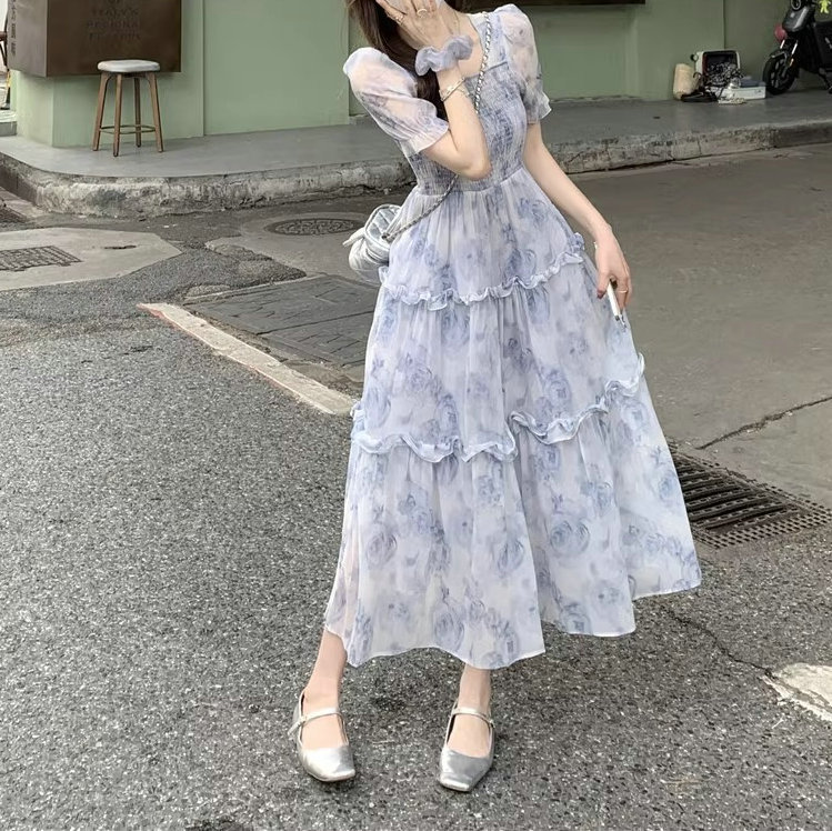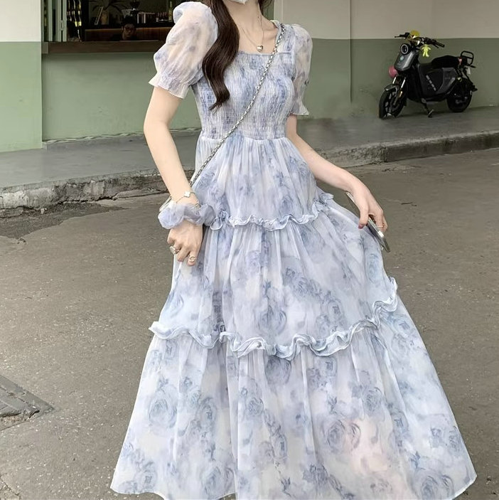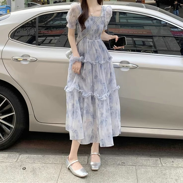 透け感のあるパフスリーブとフリルの段々デザインが大人の女性らしさを引き立てます。