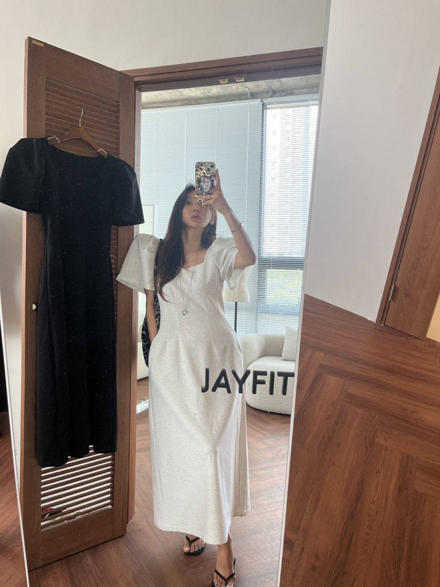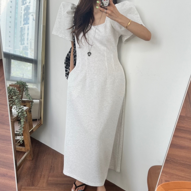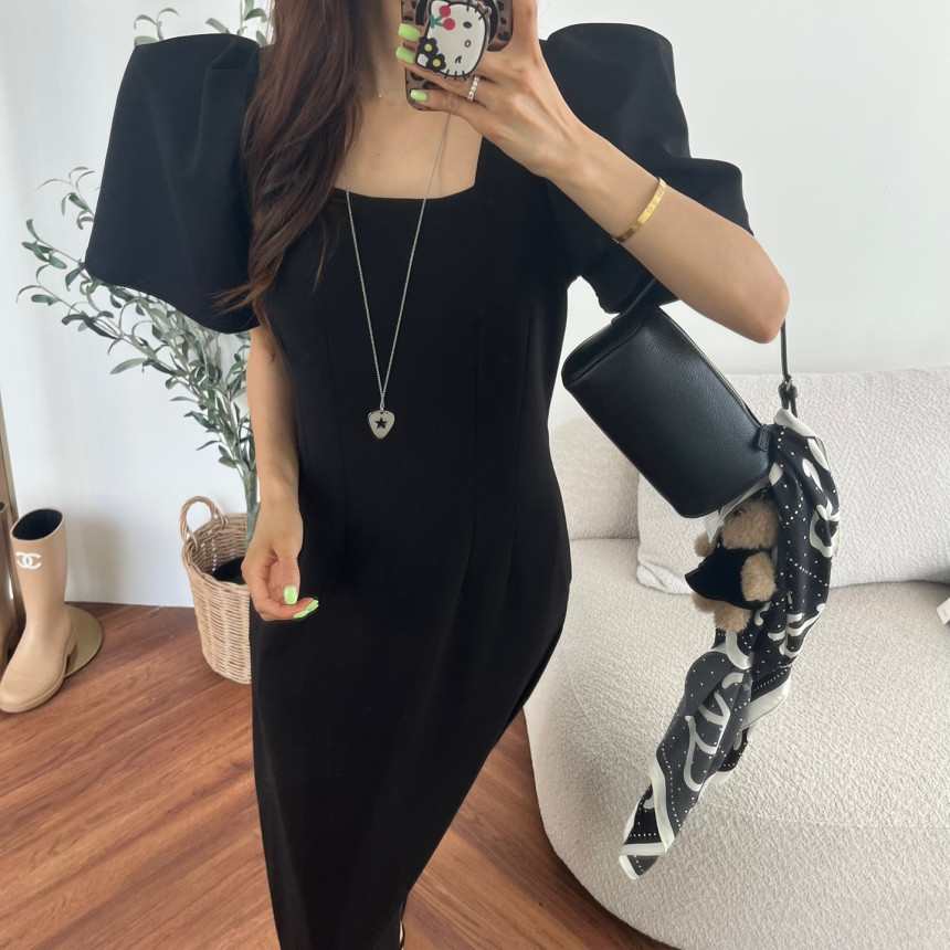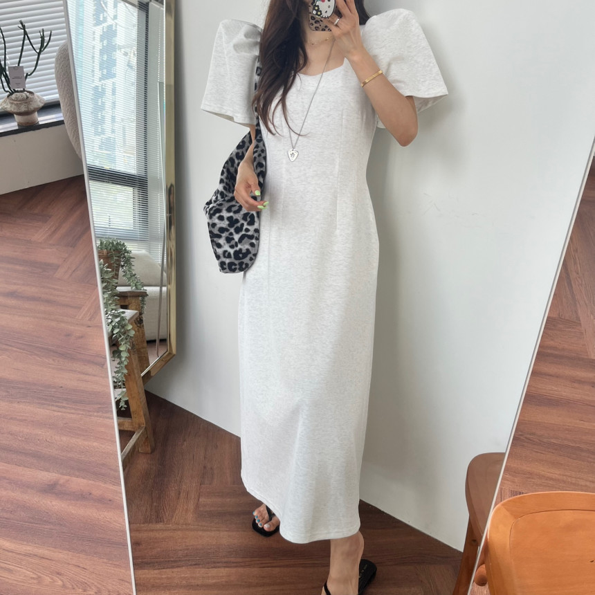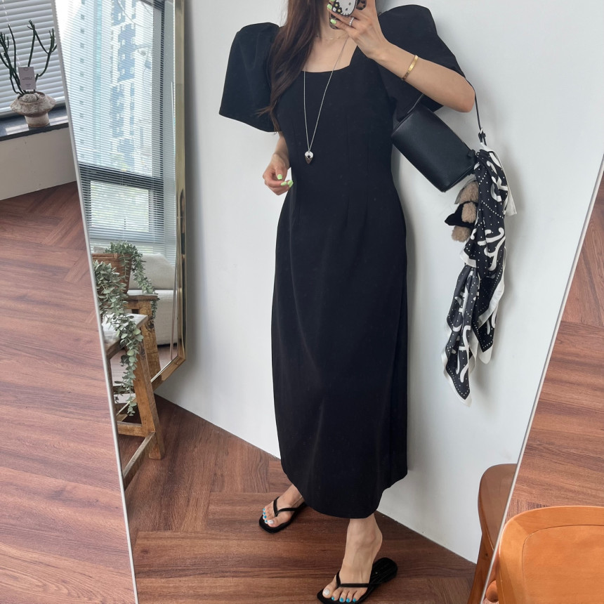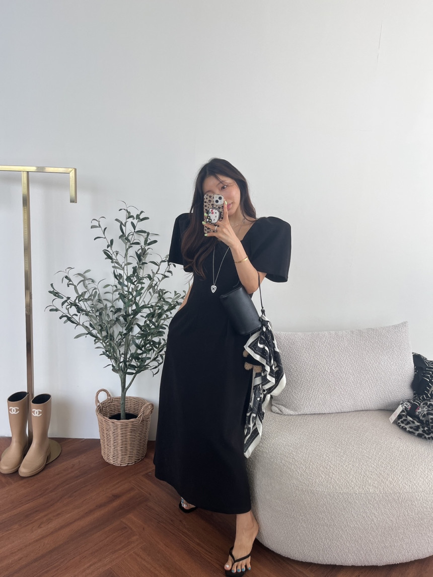 今季のトレンドを押さえたパフスリーブが印象的なマキシ丈ワンピース。
