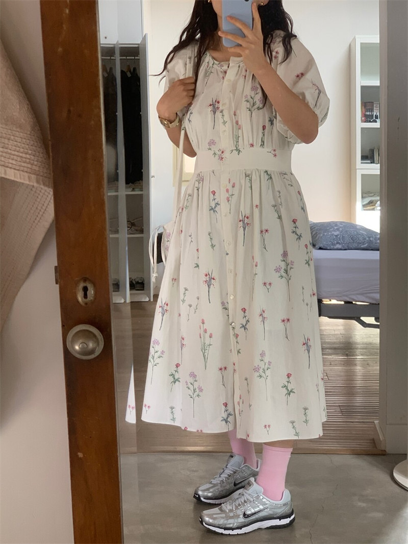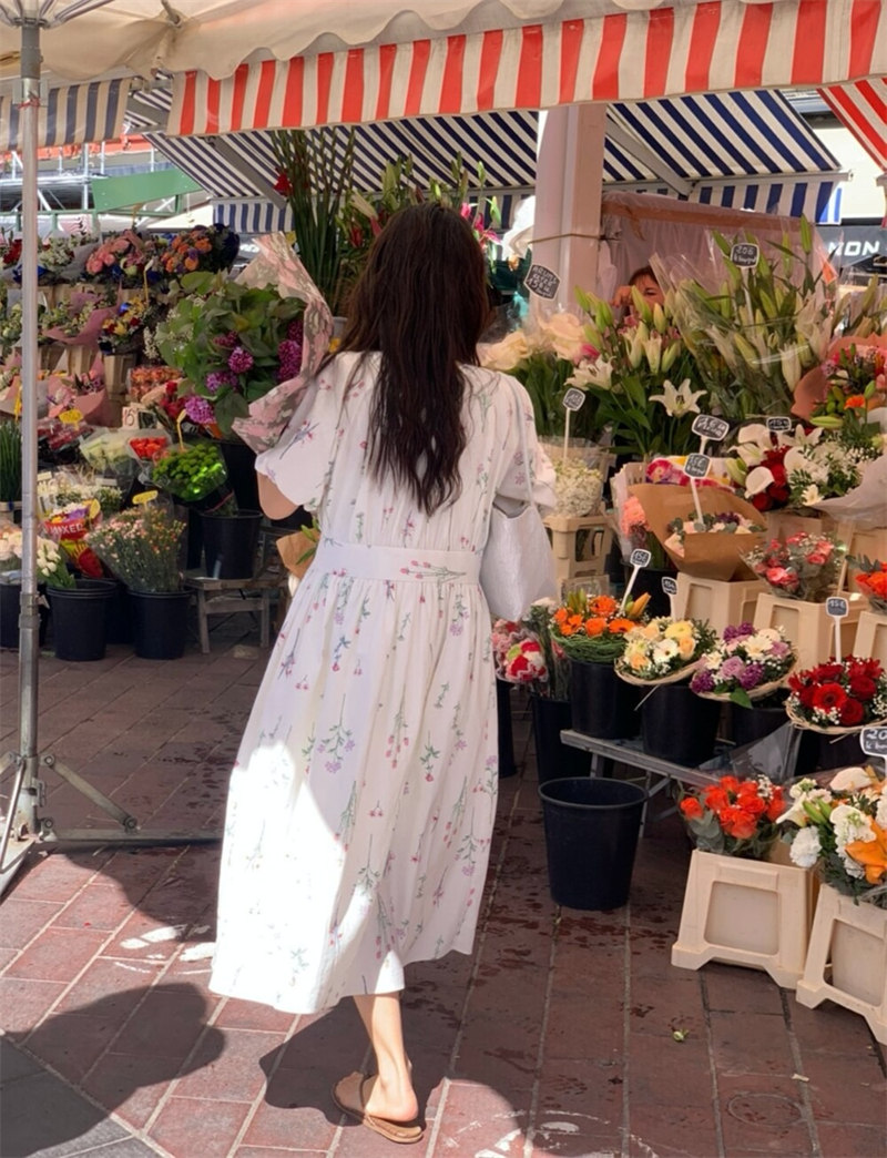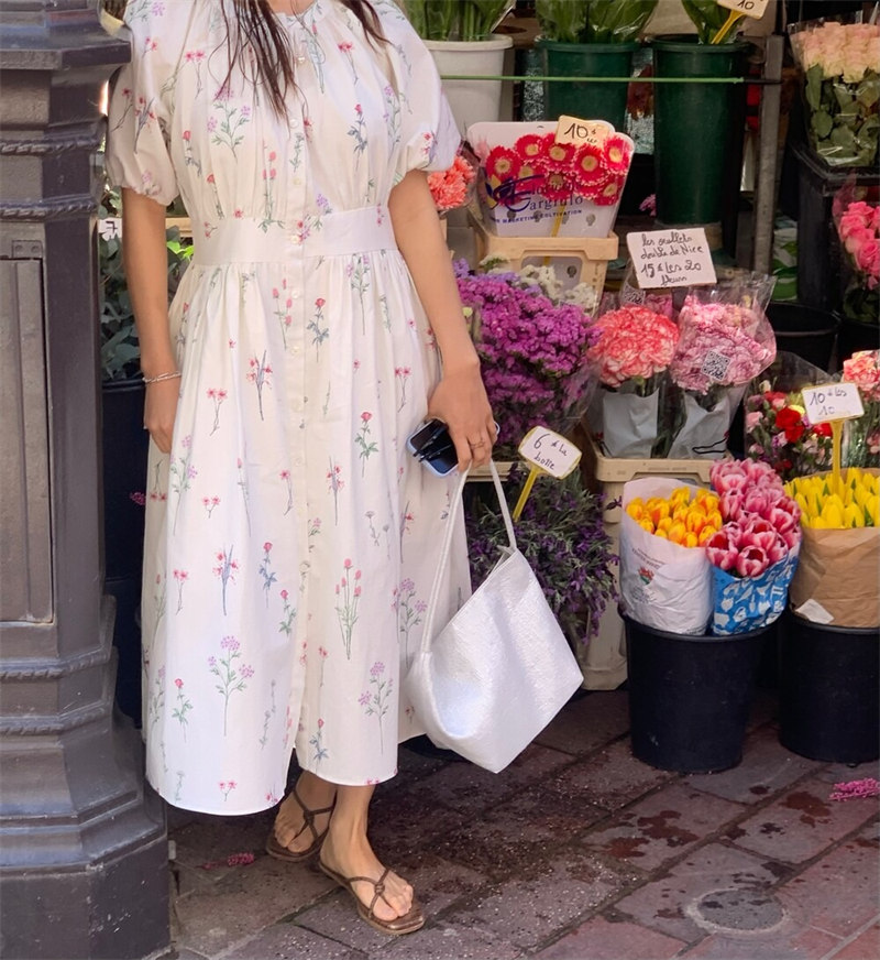 繊細な小花柄が全体に散りばめられた上品なデザインで、気質溢れる仕上がりに。