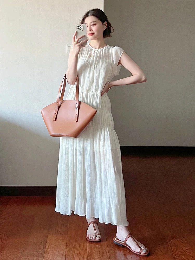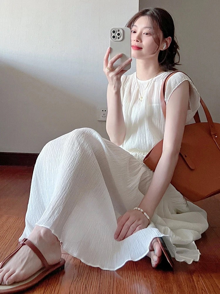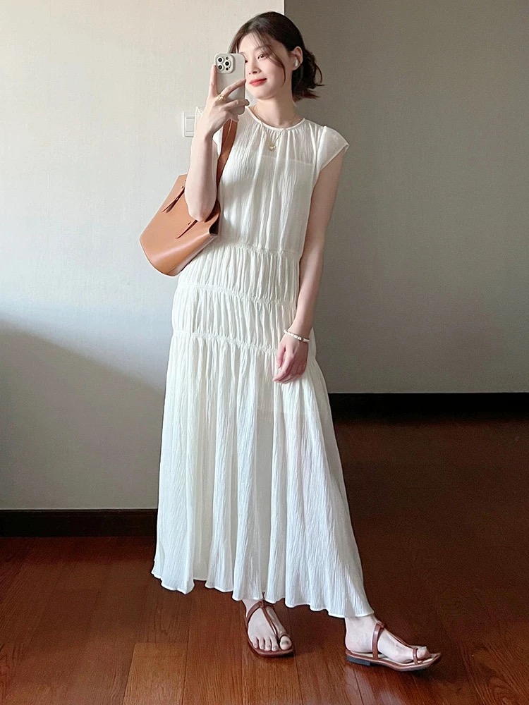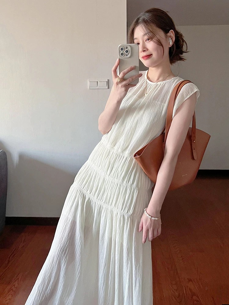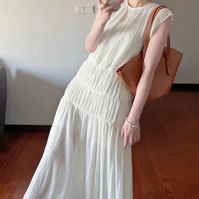 今季注目の韓国風デザインが魅力的なノースリーブロングワンピース。