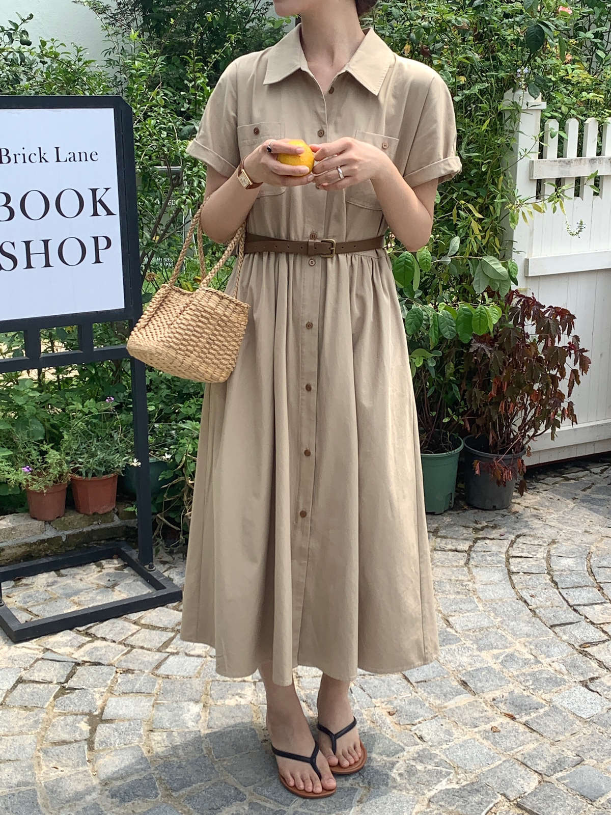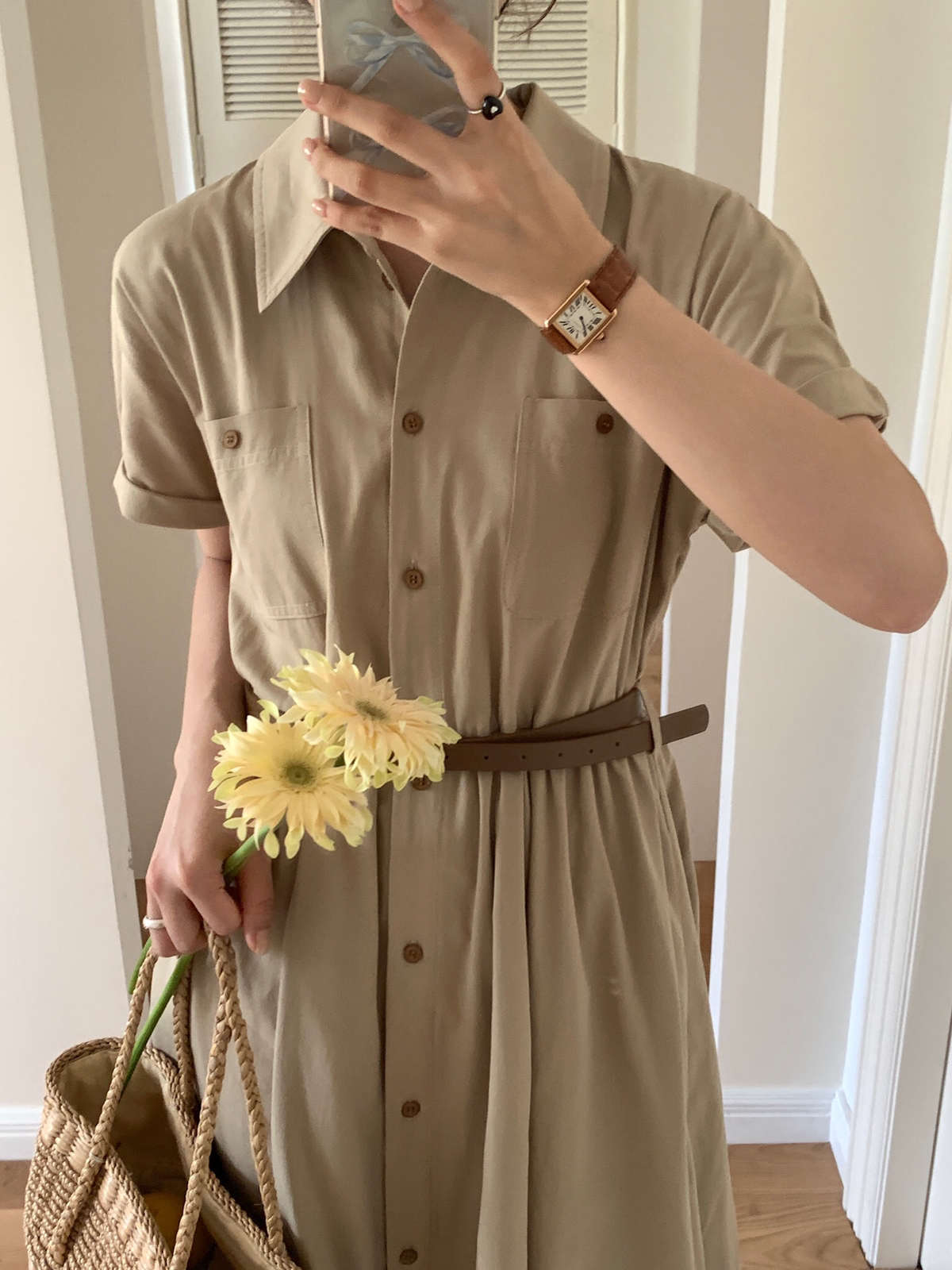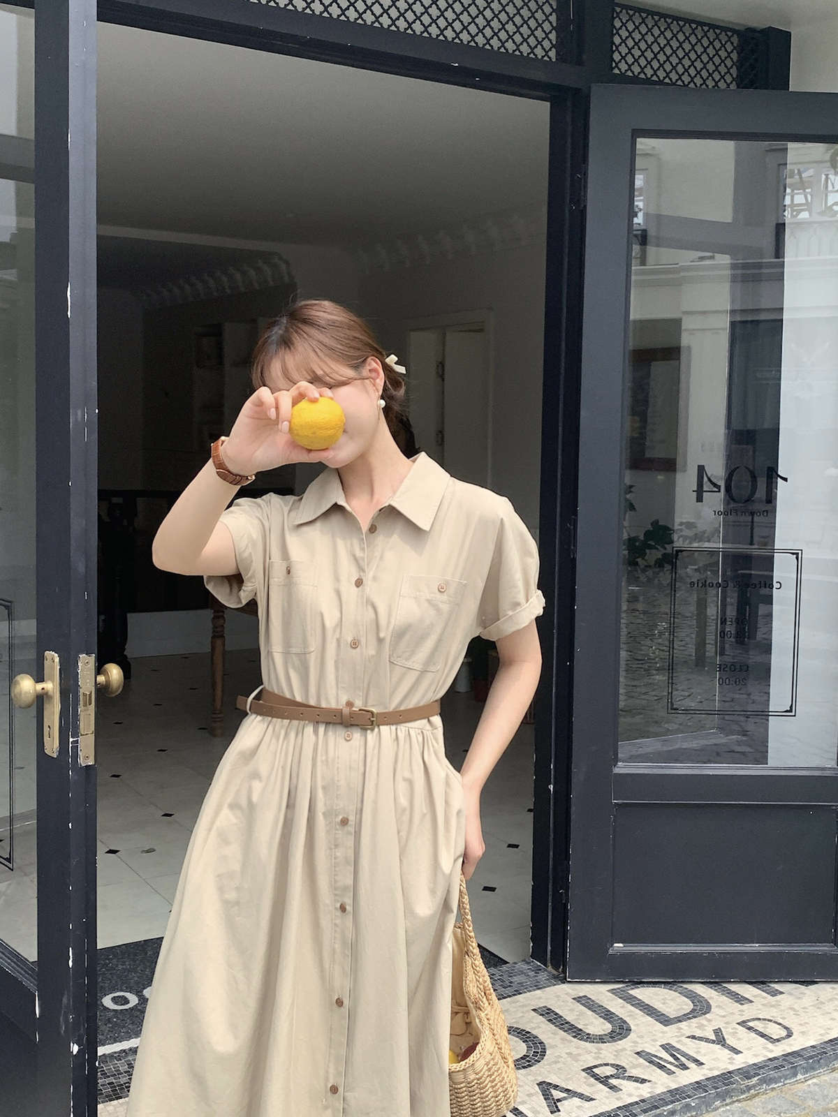 今季注目の韓国風デザインが魅力的なシャツタイプのロングワンピース。