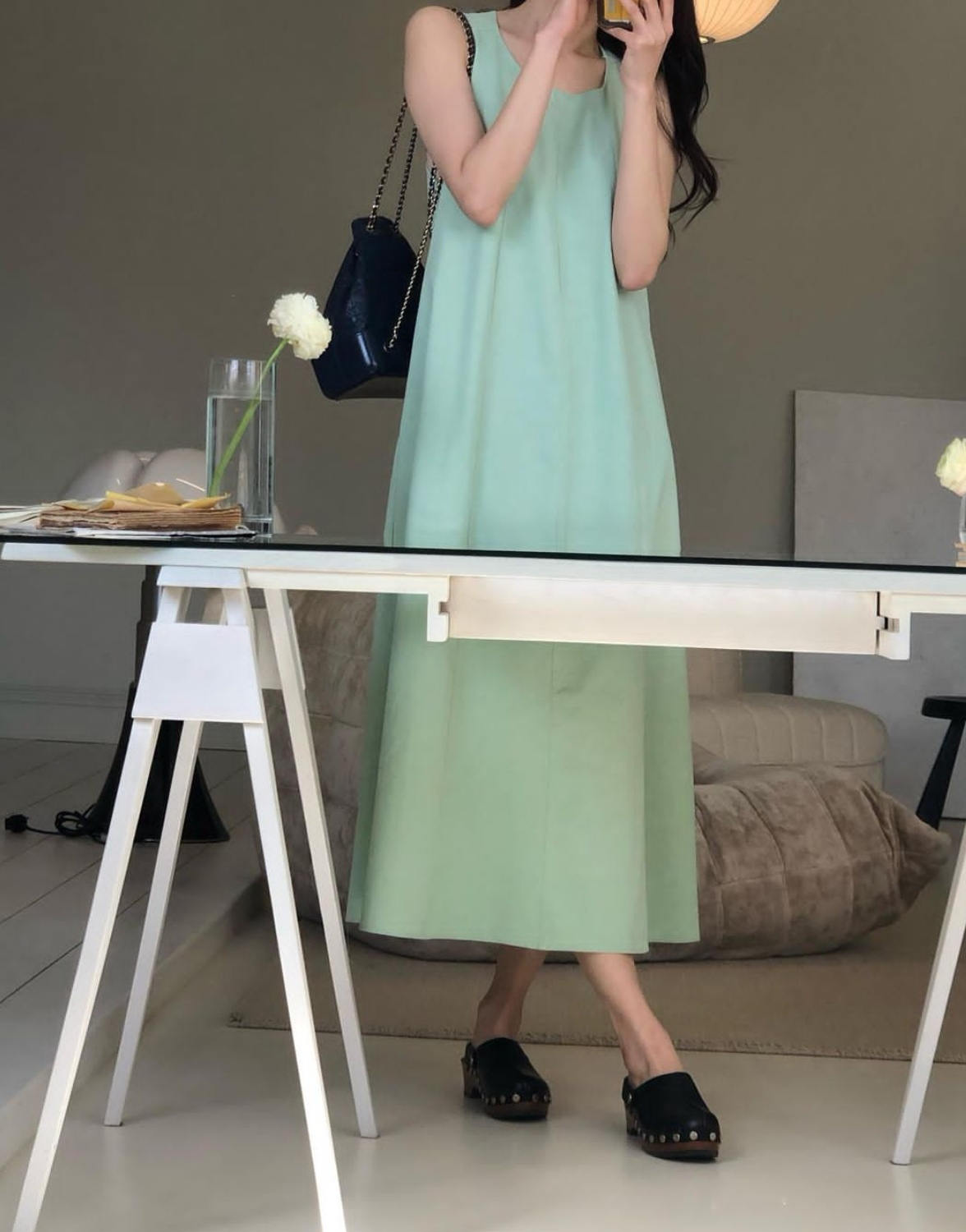 ロングワンピースならではのエレガントな丈感が、どんなシーンにも対応します。